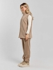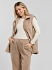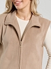 Жилет молодежный из трикотажного полотна «дабл-флис» (двухсторонний флис), прямого силуэта, с воротником «стойка», центральной бортовой застежкой на тесьму «молния». Для создания диагональных линий боковые швы переведены на полочку и оформлены в рельефные швы, в которых обработаны карманы.