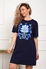 Туника женская прямого силуэта. Низ изделия прямой. Длинна выше колена, плечо спущенное, рукав короткий. Горловина круглой формы, обработана планкой с отделочной строчкой по шву притачивания. Принт (шелкография) располагается по центру переда.