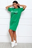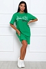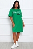 Туника женская прямого силуэта. Низ изделия прямой. Длинна выше колена, плечо спущенное, рукав короткий. Горловина круглой формы, обработана планкой с отделочной строчкой по шву притачивания. Принт (шелкография) располагается по центру переда.