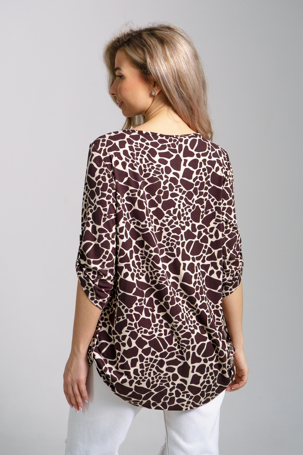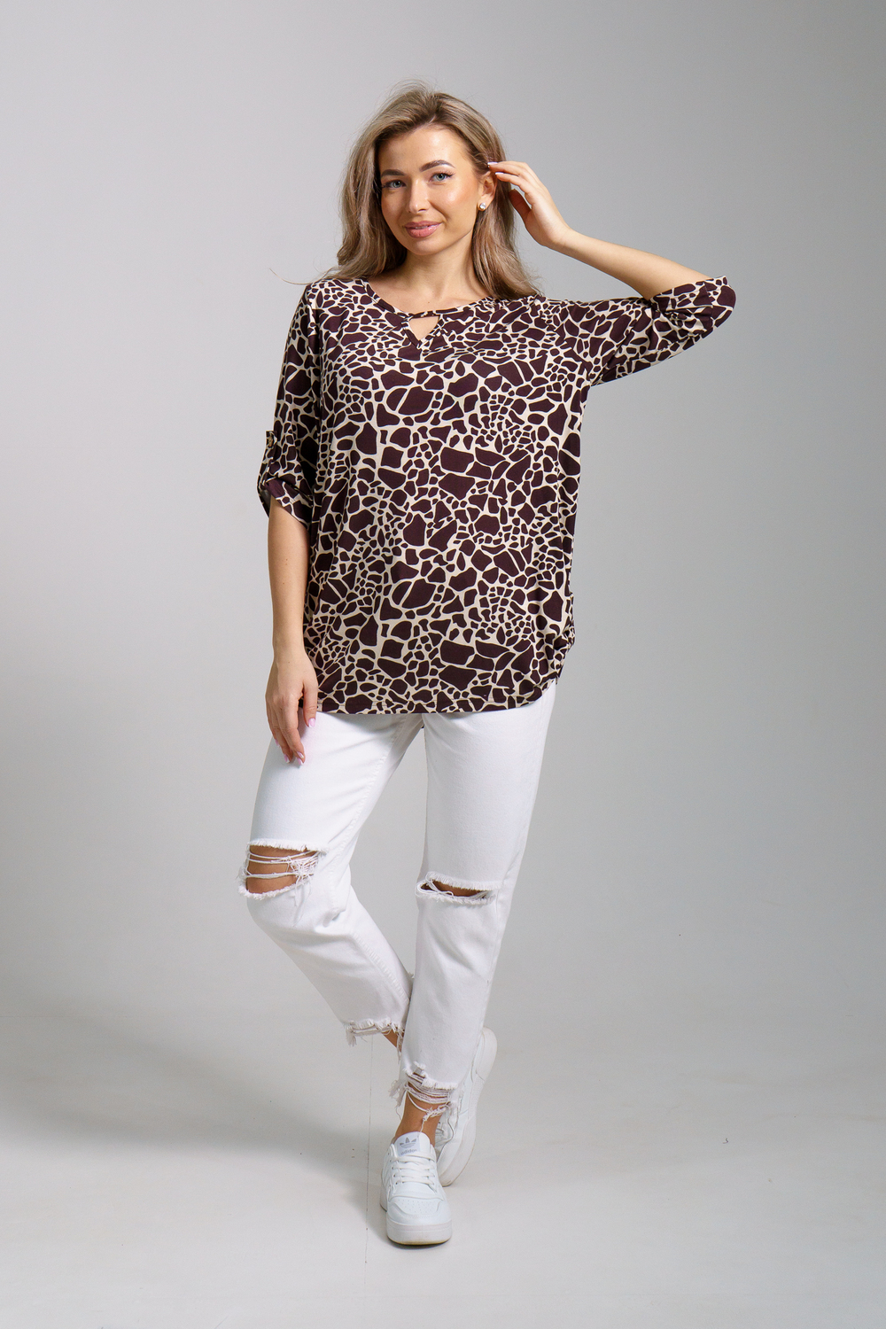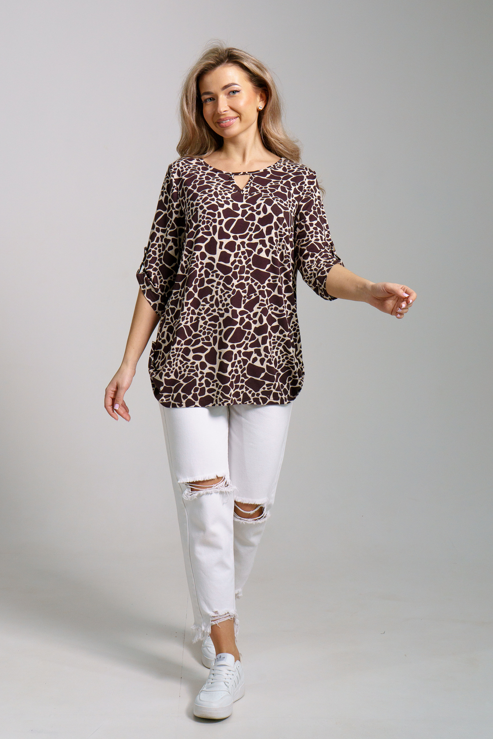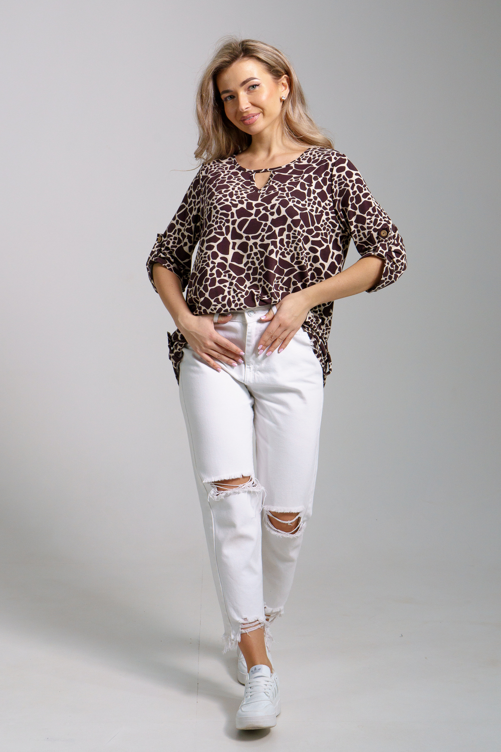 Женская туника свободного силуэта в стиле oversize выполнена из струящегося нежного вискозного полотна с модным рисунком. Этот стиль подходит для любой женщины, ведь он может скрыть все недостатки фигуры и подчеркнуть её достоинства. На материале выполнена печать диджитал с чёткой, яркой и чистой цветопередачей. То есть, рисунок печатается специальным оборудованием сразу на полотне без промежуточных носителей. Такие принты не боятся частых стирок, утюжек и не выгорают на солнце. Округлая горловина с треугольным вырезом, паты на рукавах и по низу изделия делают тунику удобной и привлекательной. Большие размеры подчеркнут ваши достоинства и скроют все недостатки фигуры, благодаря своему идеальному крою. Туника женская с рукавом 3/4 не сковывает движения. Одежда из материала такого плана прослужит вам долгое время, не теряя свой цвет и форму. Тунику летнюю можно взять с собой в роддом, в поездку, на отдых в санаторий или будет идеальным вариантом для похода на работу, корпоратив, фотосессию. А также будет отличным подарком для мамы, бабушки, сестры, подруги и себя любимой. А подарить такой сюрприз можно на любой праздник, день рождения или юбилей, новый год или 8 марта. Туника удлиненная женская будет хорошо смотреться как на невысоких, так и на высоких. Современная туника - это почти неотъемлемая часть гардероба любой женщины, которая сделает Вас неотразимой в любой ситуации.
