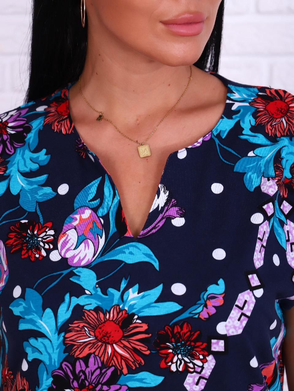 Туника женская летняя, домашняя. Прямой силуэт, карманы боковые в шве, длина ниже колена.