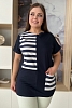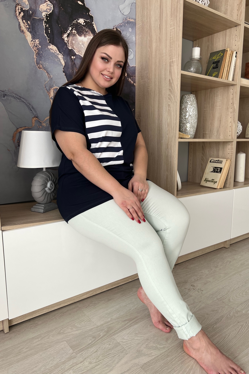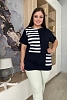 Туника женская прямого силуэта с цельнокроенным коротким рукавом. На полочке вставка и накладной карман из ткани в полоску. На модели 52 размер