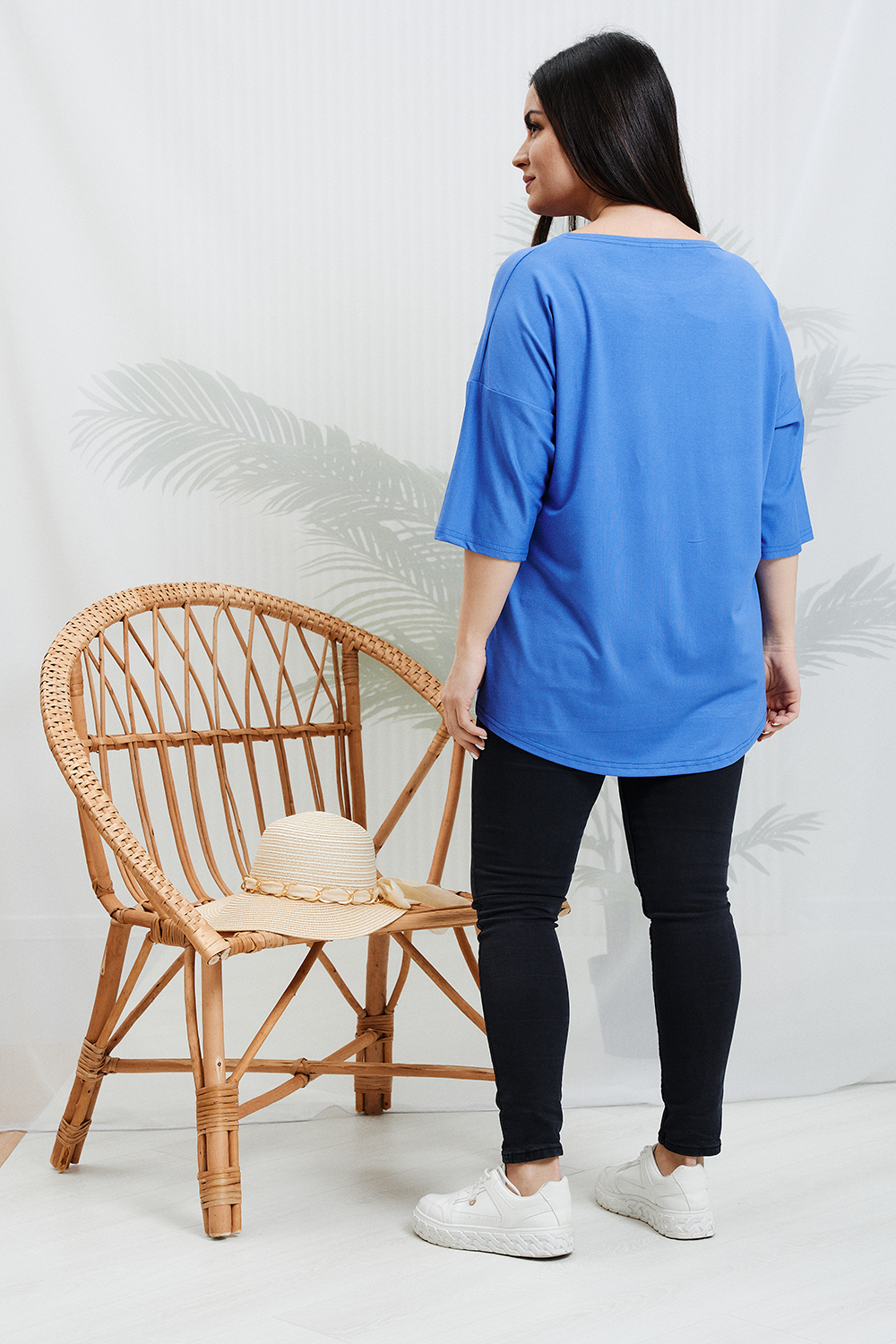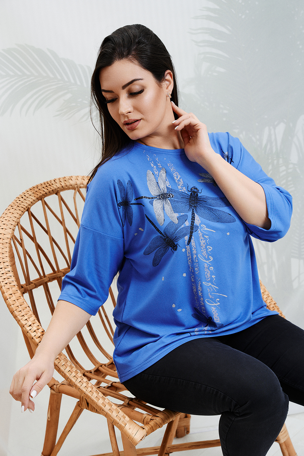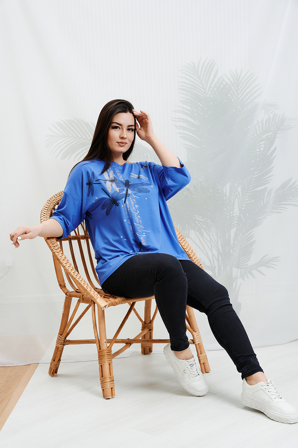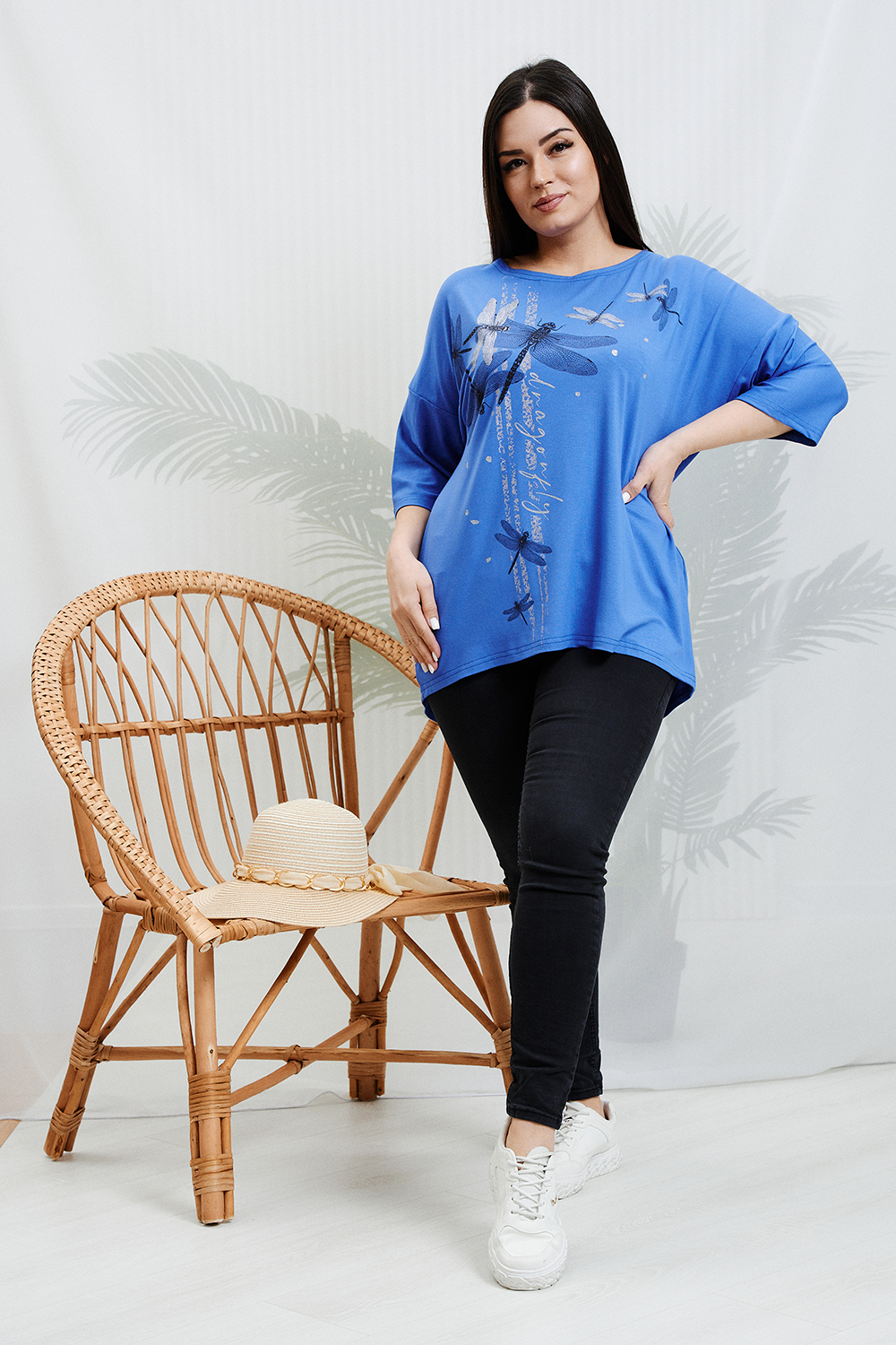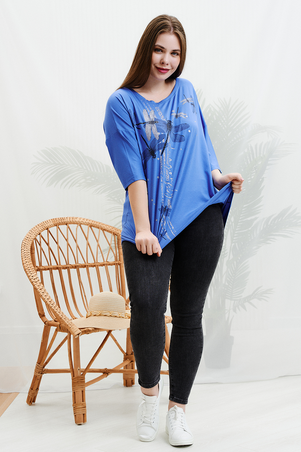 Туника женская прямого силуэта. Рукав цельнокроенный со швом. Горловина округлая. Низ фигурный. На полочке модный принт.