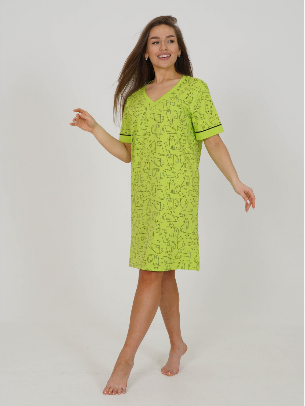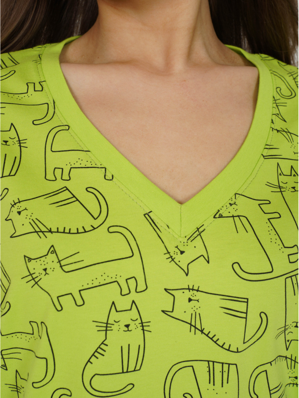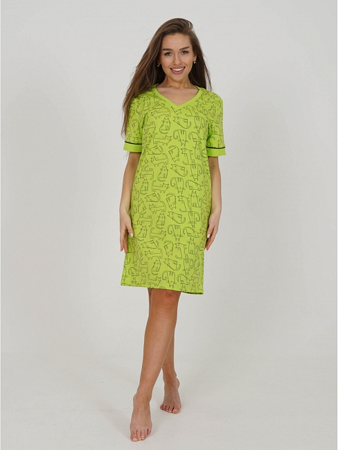 Женская туника Анфиса отличается прямым силуэтом, V-образным вырезом и короткими рукавами с манжетами, декорированными контрастным кантом.
