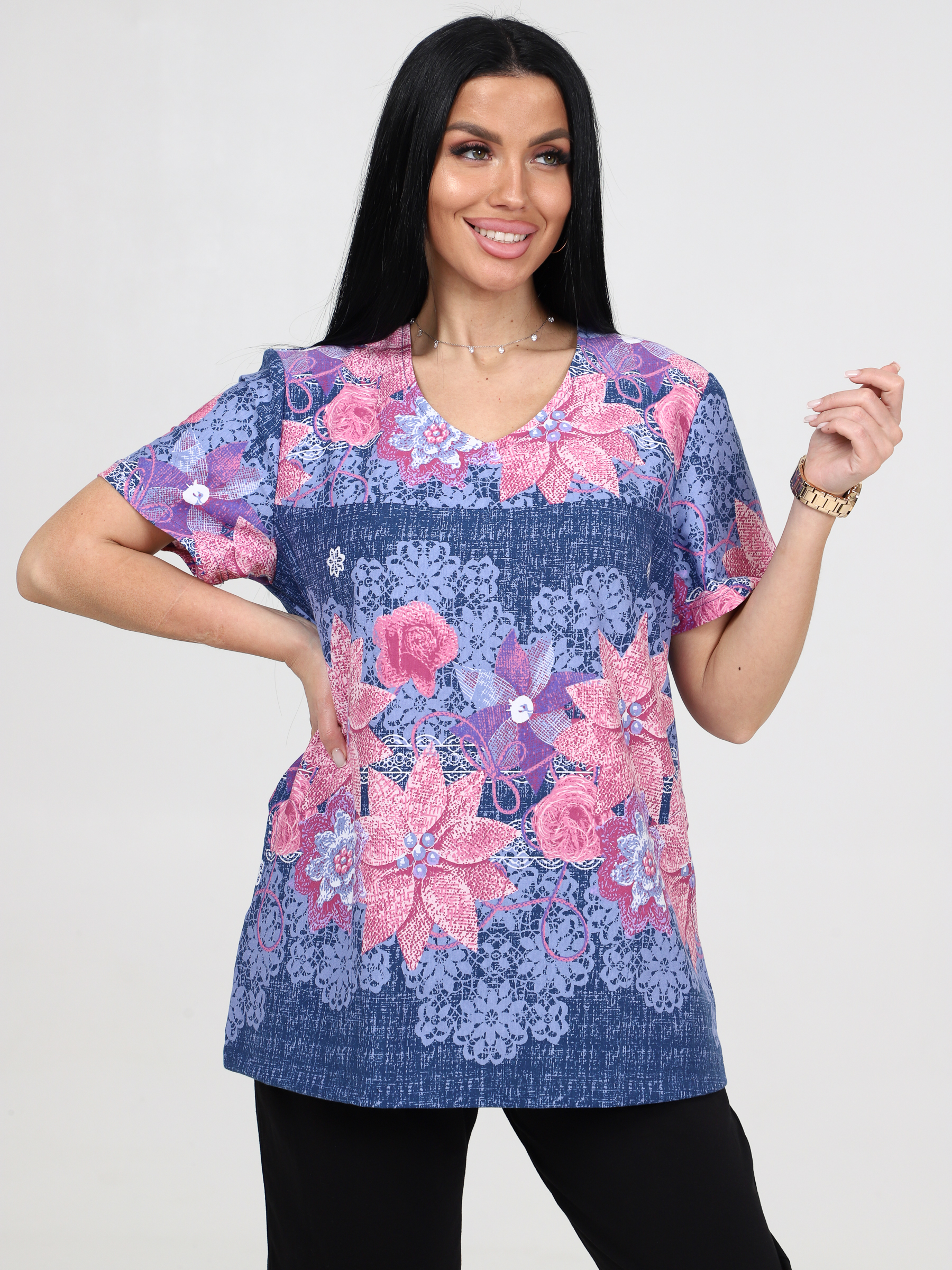 Женская туника БЛЮЗ ТК-72-ФУТ / Цветы на джинсе, кружево