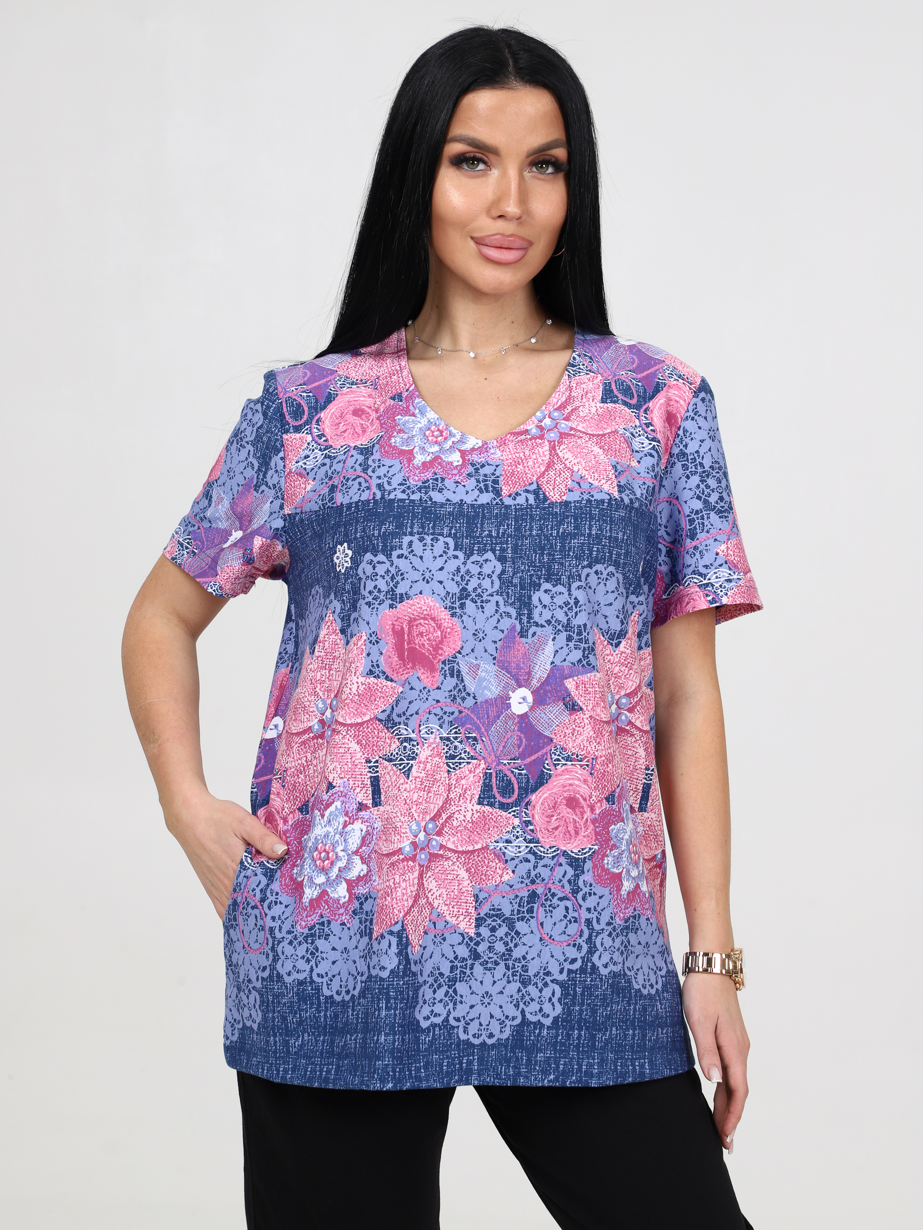 Туника женская с карманами, для дома из 100% хлопка. Короткие рукава не мешают выполнять домашнюю работу в случае необходимости. Туника / футболка трикотажная очень удобная и комфортная модель.