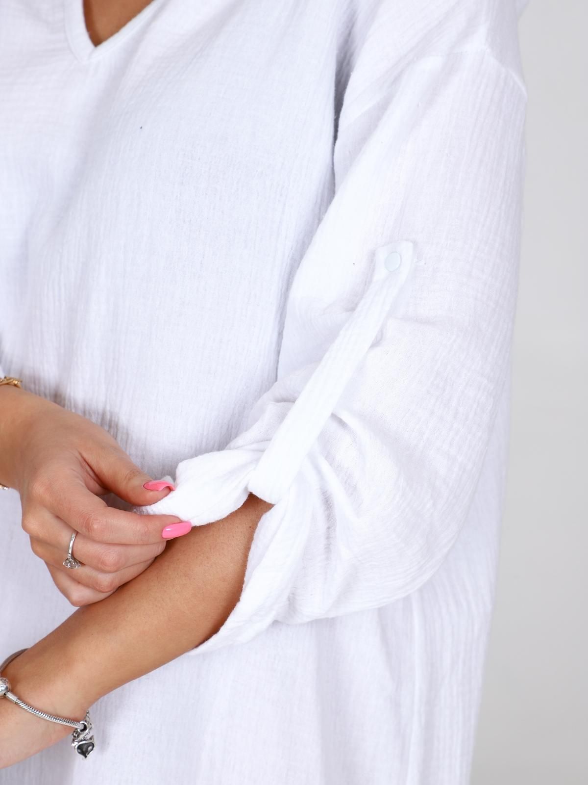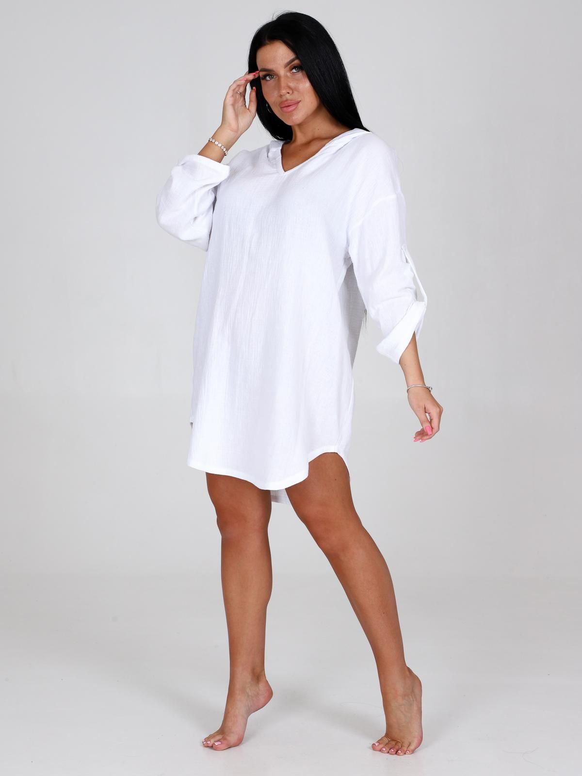 Женская туника из муслина — лёгкая, дышащая и комфортная одежда, подходящая для лета, пляжа, дома или повседневной носки. Муслин — 100% хлопок, который хорошо впитывает влагу, пропускает воздух и не вызывает аллергии. Такие туники часто имеют свободный крой, что обеспечивает свободу движений.