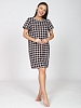 Домашнее платье полуприлегающего силуэта длиной до колена. Рукав короткий. Изделие имеет два боковых кармана.