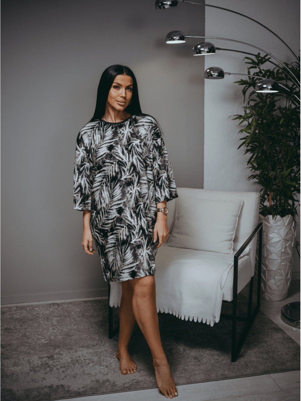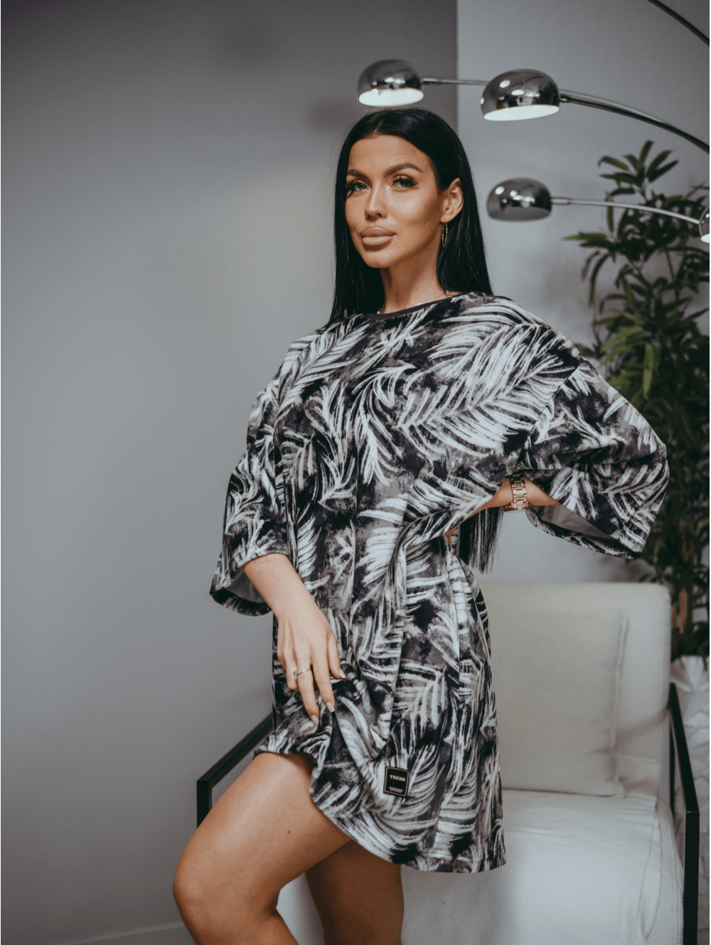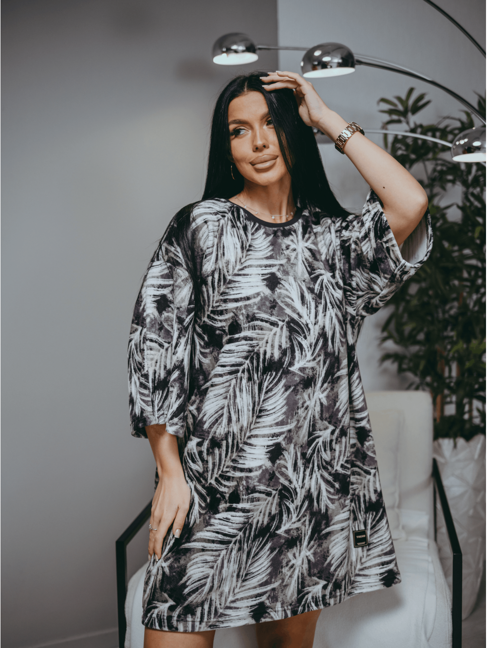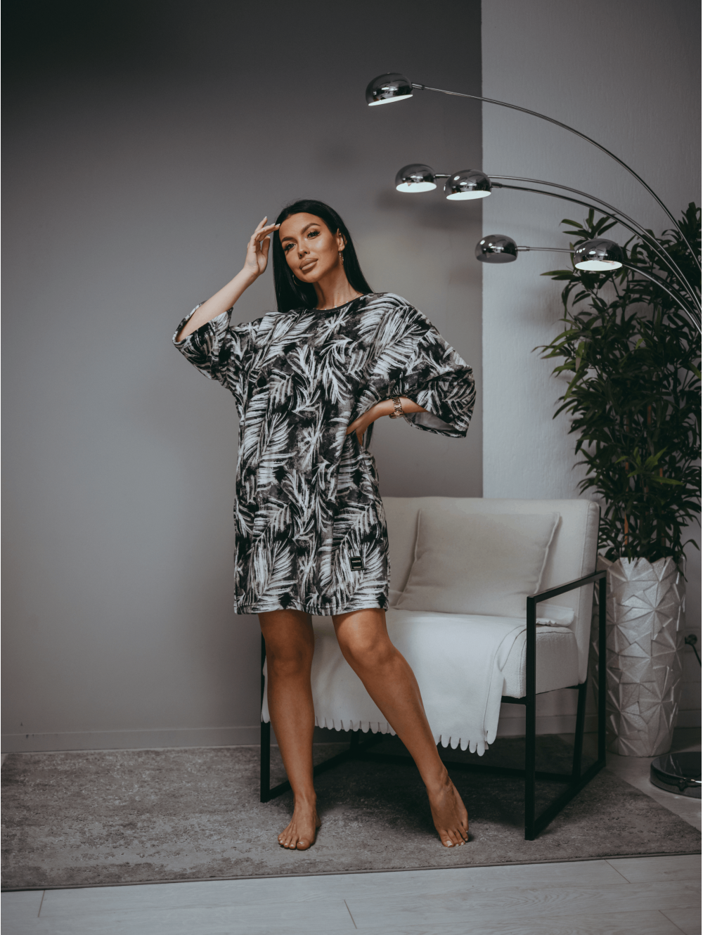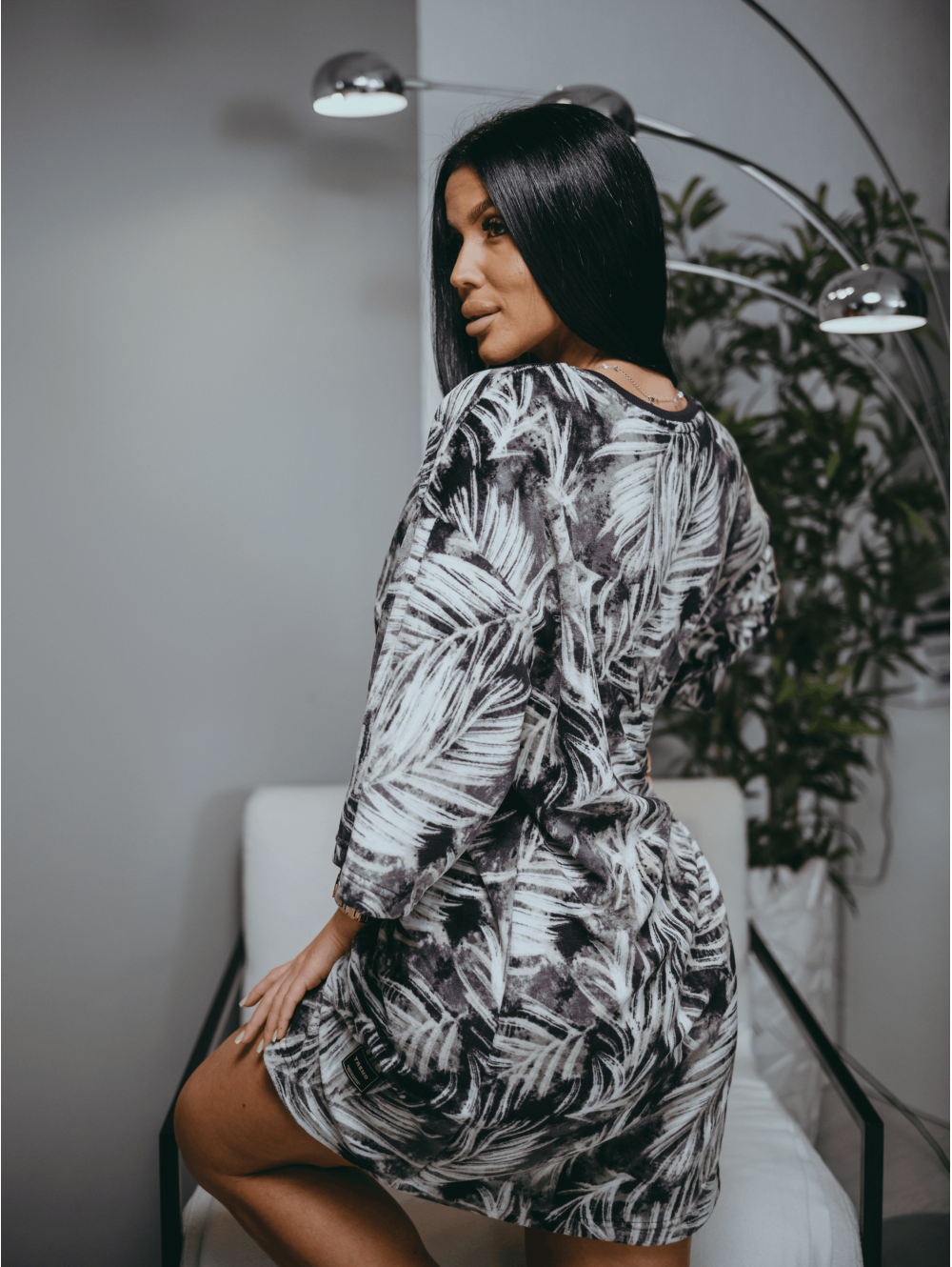 Туника из велюра Маиса oversize с коротким спущенным втачным рукавом.
