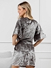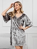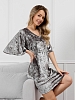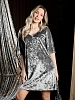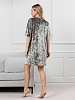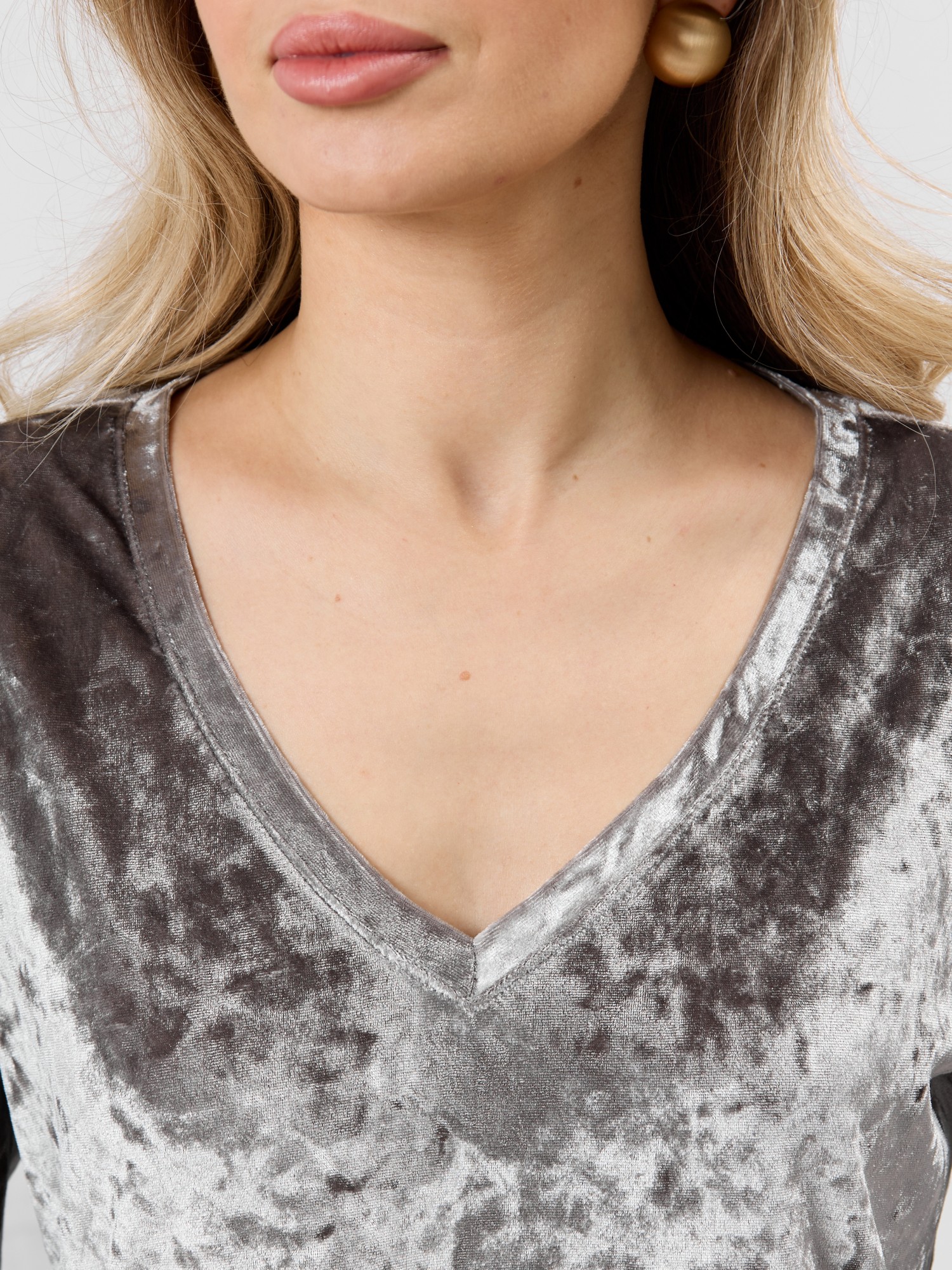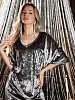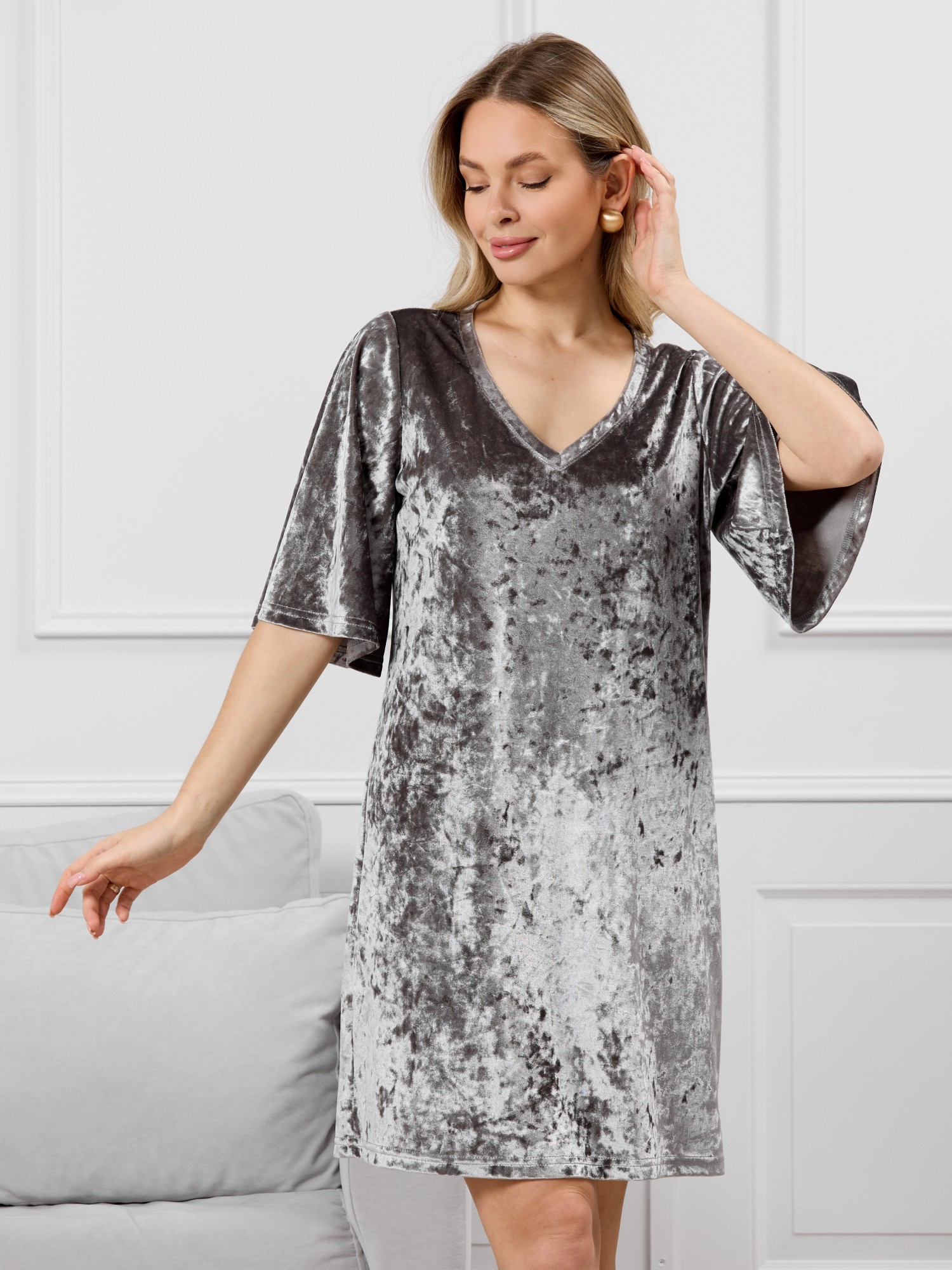 Туника молодежная из гладкокрашенного полотна «велюр стрейч» с мраморным эффектом, прямого силуэта слегка расширенная книзу, с горловиной V-образной формы, обработанной втачной планкой, с рукавами длиной до локтя, расширенные книзу в форме «конуса».