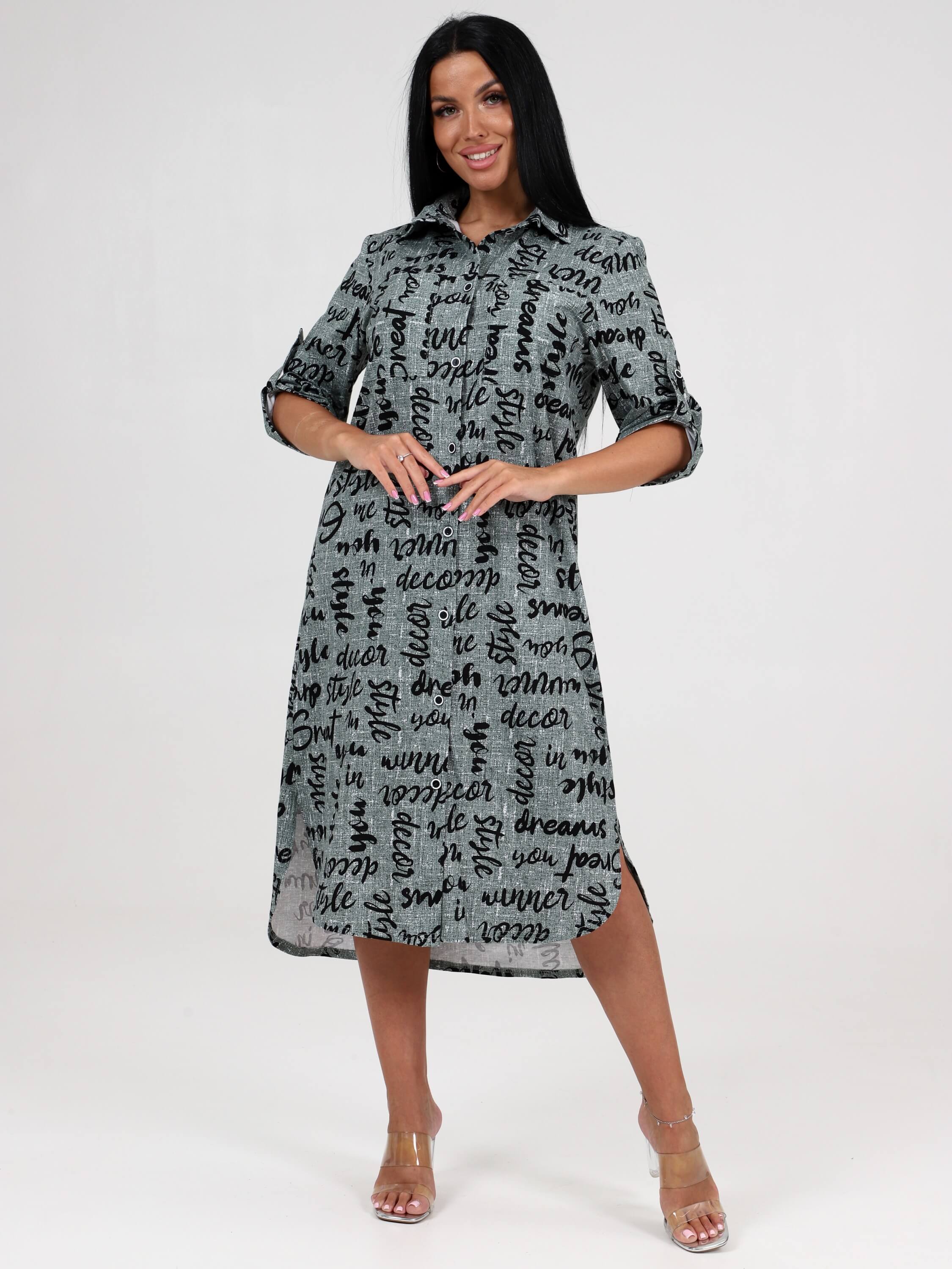 Женская туника МИДИ ТК-25 / Черные надписи на зеленой рогожке