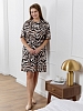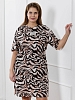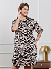Туника молодежная из трикотажного полотна «кулирка» с набивным рисунком, прямого силуэта, с короткими втачными рукавами, горловиной овальной формы, обработанной притачной бейкой из основного материала, с разрезами в боковых швах. По центру полочки рядом с горловиной настрочен декоративный элемент-нашивка.