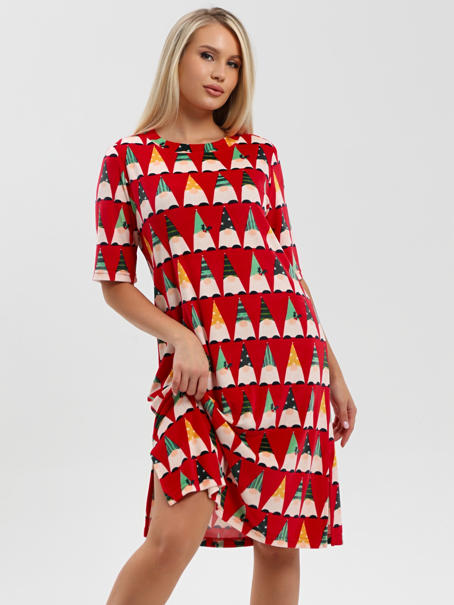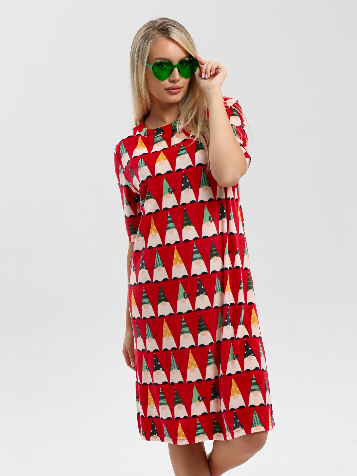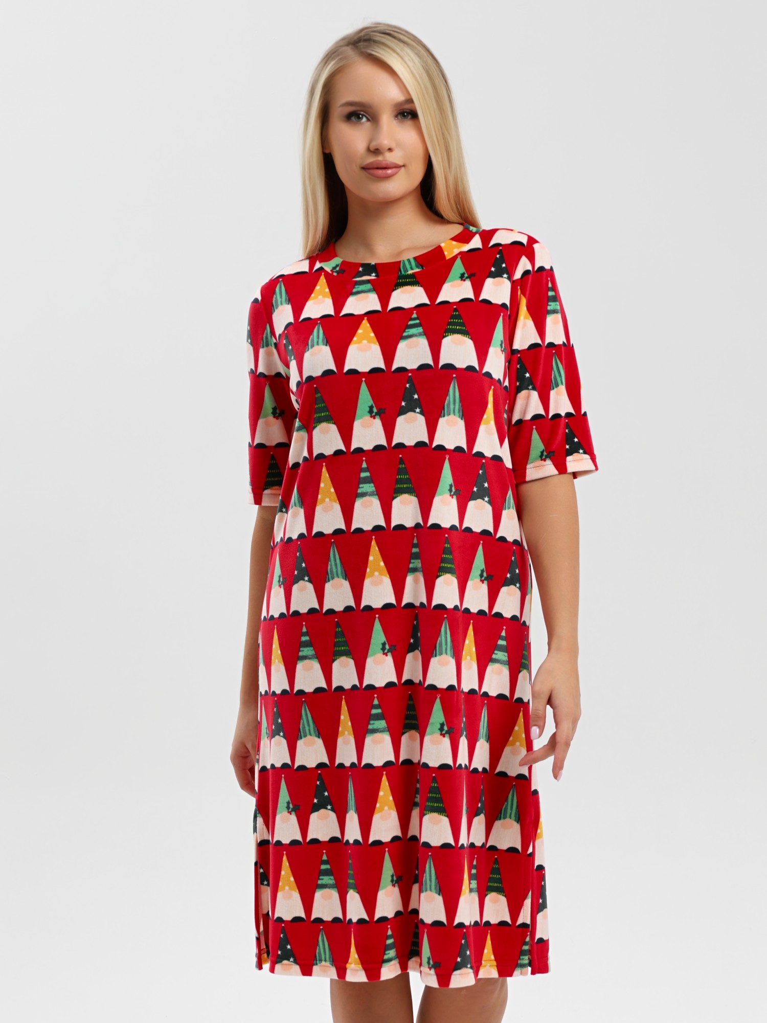 Туника молодежная из трикотажного полотна «велюр стрейч» с набивным рисунком, свободного покроя, с короткими втачными рукавами, горловиной овальной формы, обработанной втачной планкой и разрезами в боковых швах.