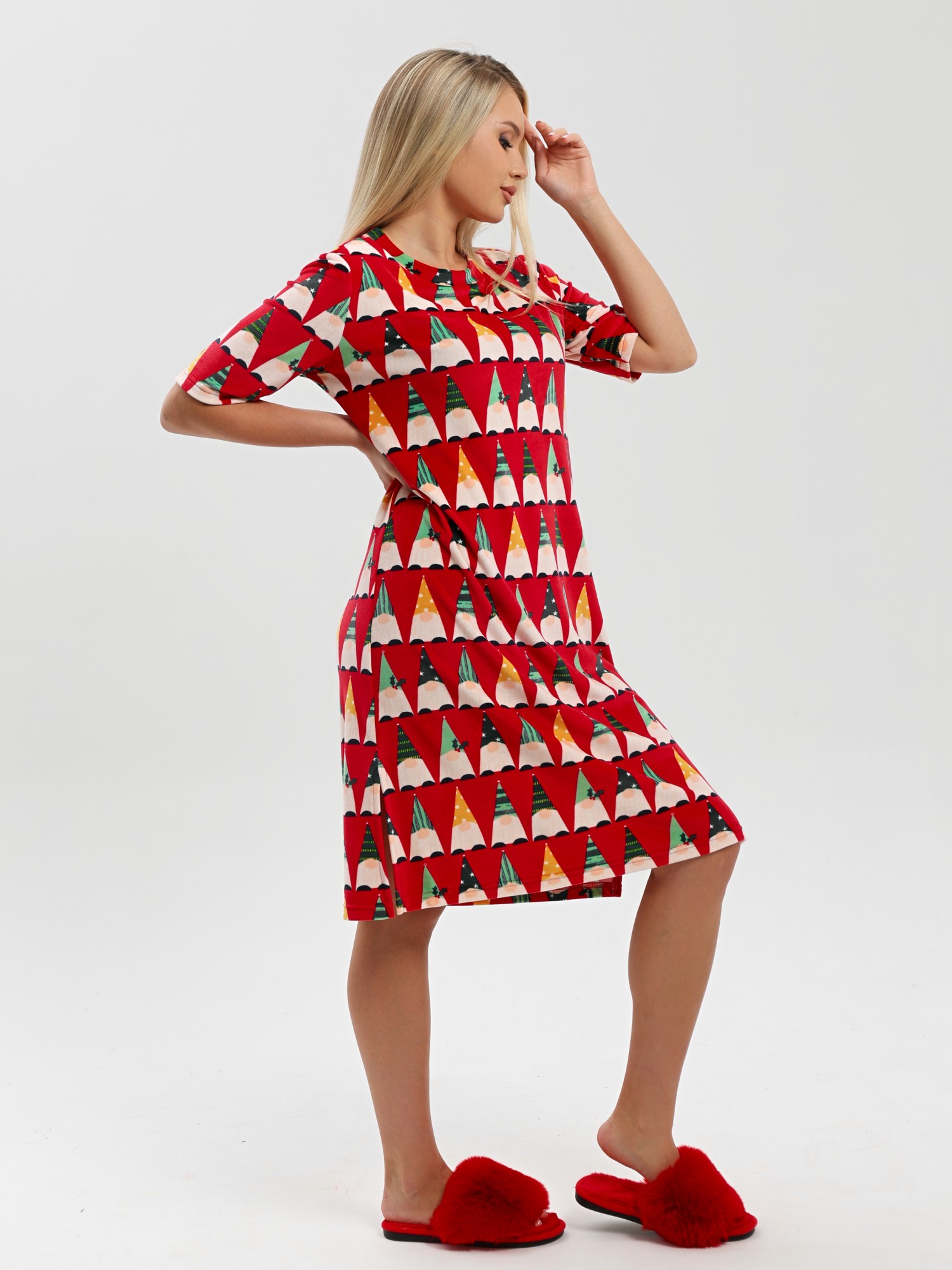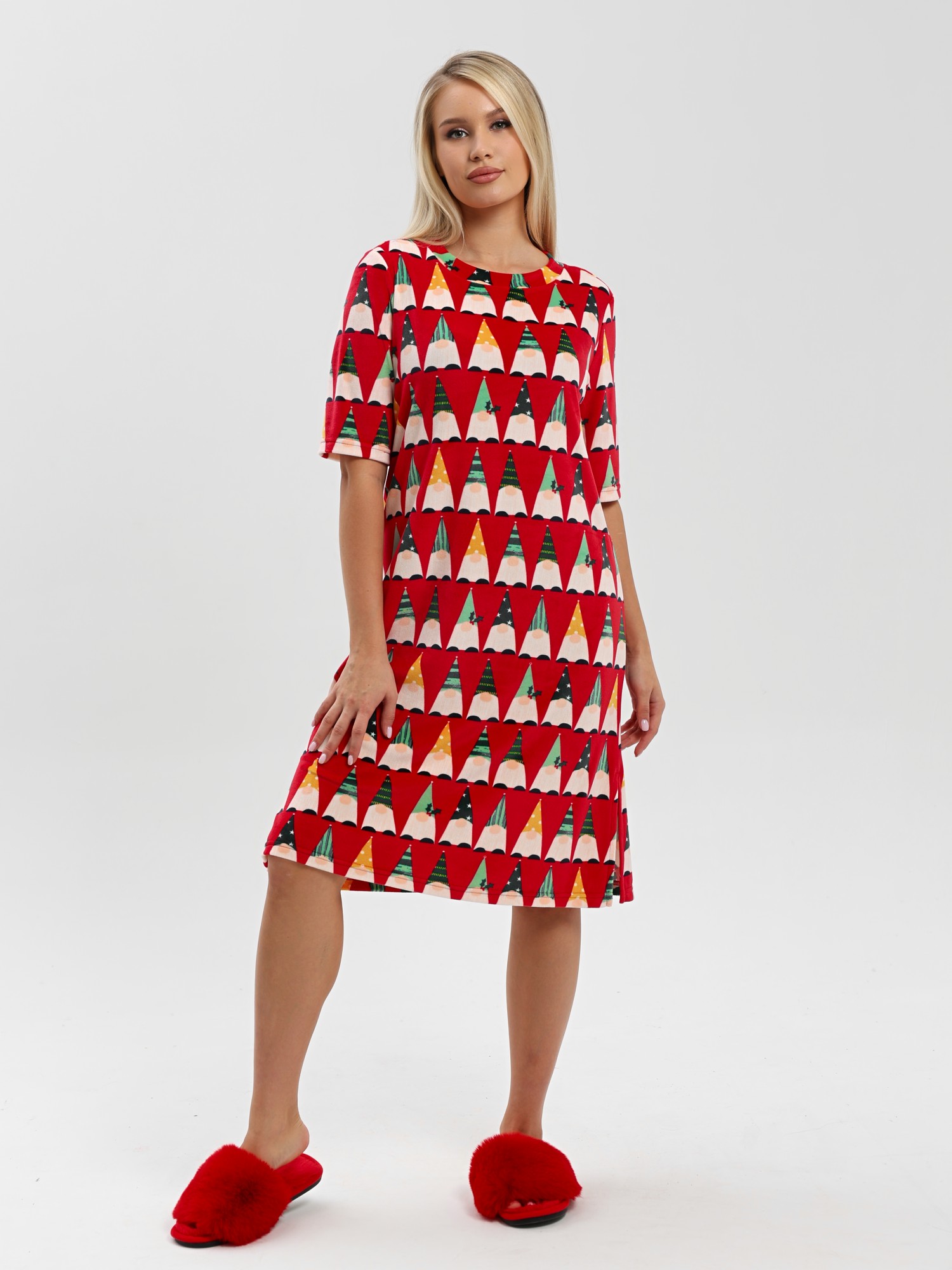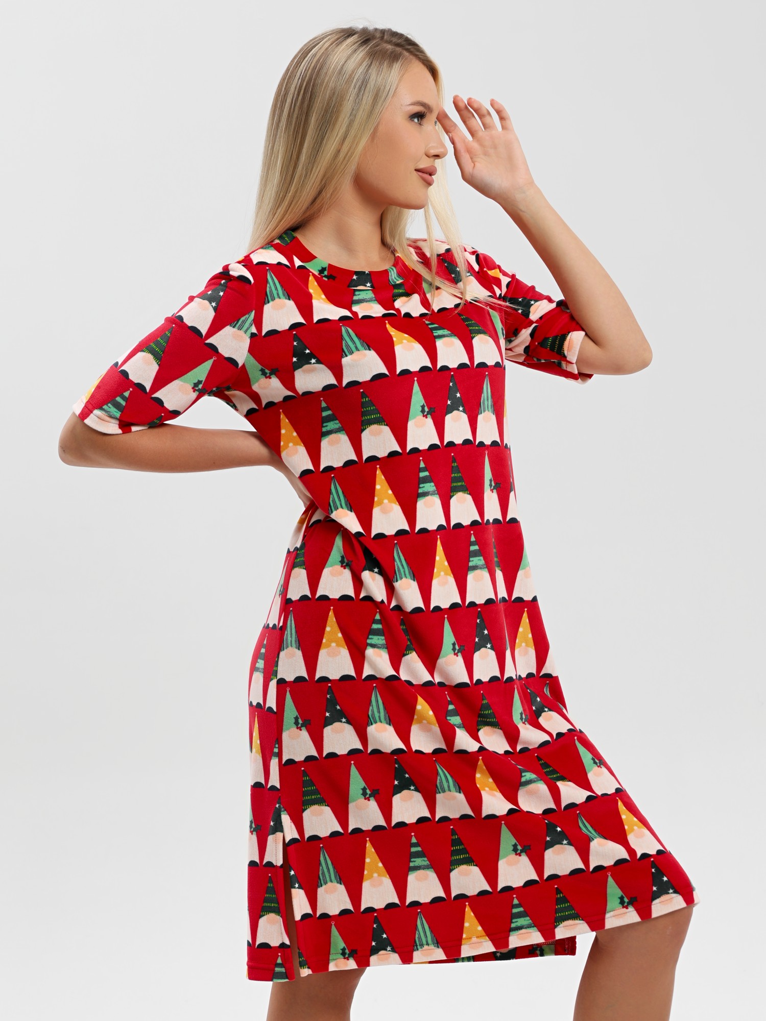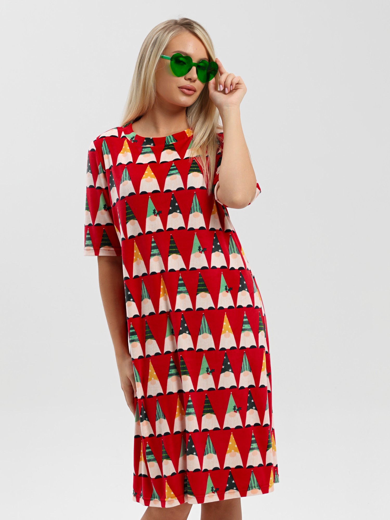 Туника молодежная из трикотажного полотна «велюр стрейч» с набивным рисунком, свободного покроя, с короткими втачными рукавами, горловиной овальной формы, обработанной втачной планкой и разрезами в боковых швах.