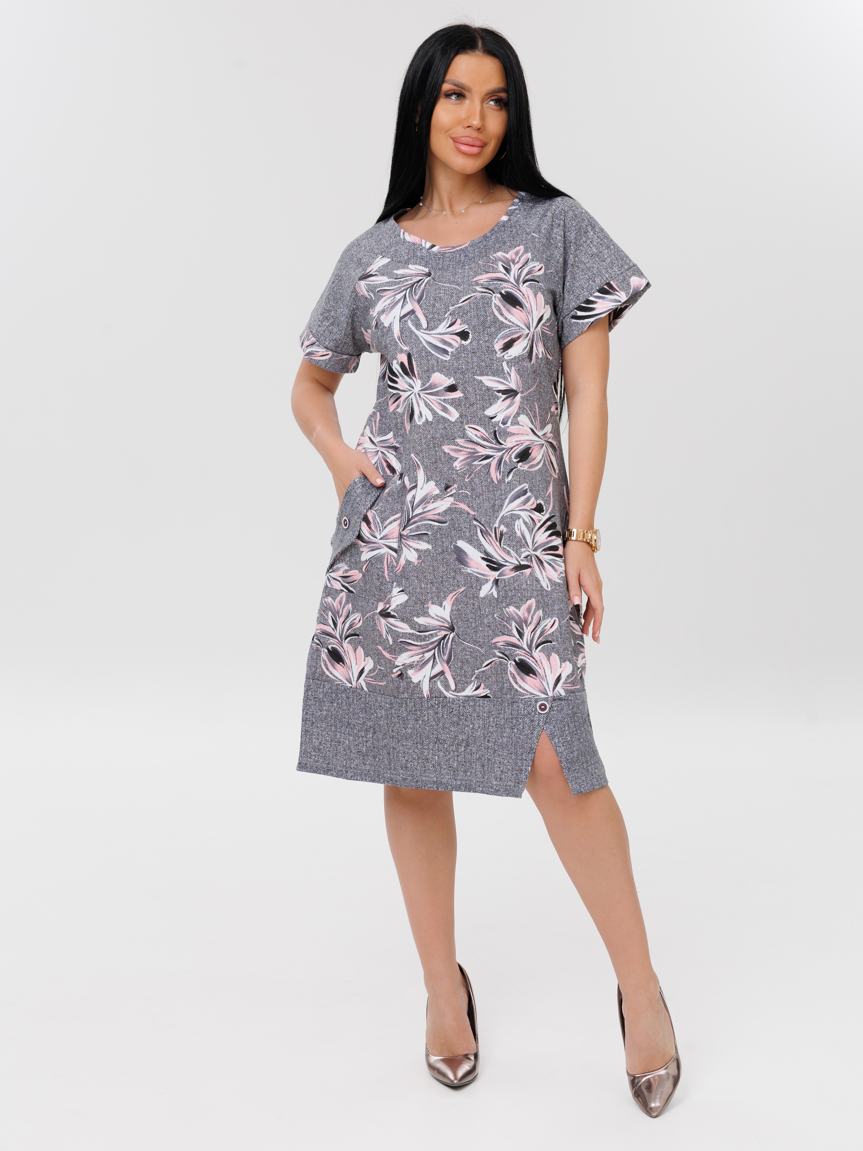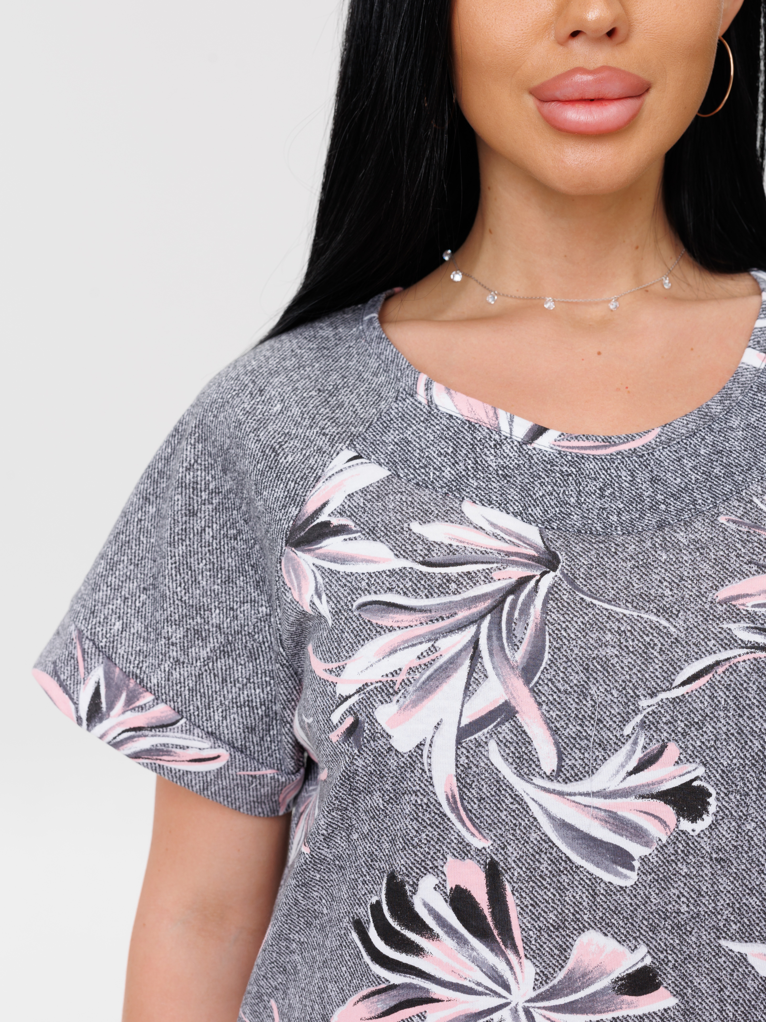 Женская туника Т-113(К) / Серый (цветы)