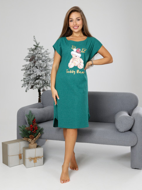 Легкая свободная туника для дома. Спущенный рукав, вырезы по бокам. Новогодний принт.