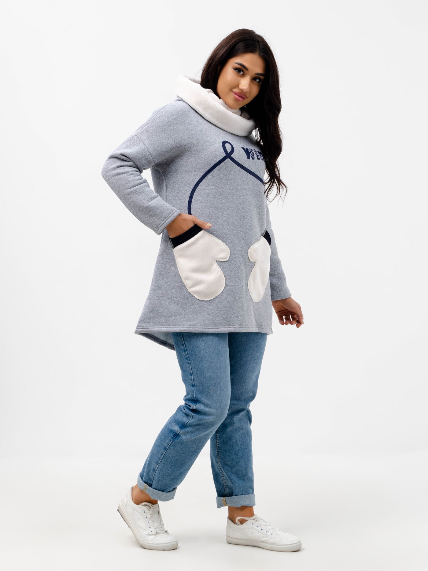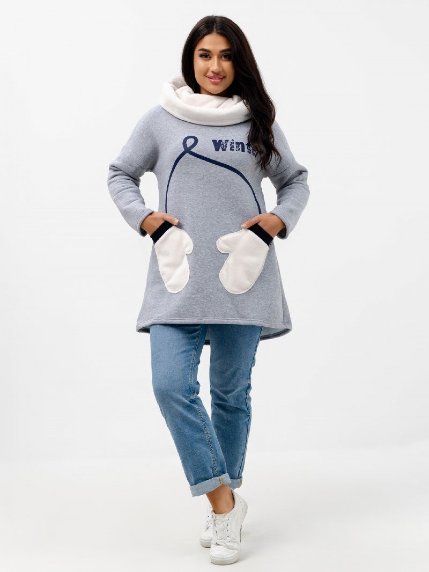 Женская туника - толстовка из футера — это универсальная вещь, сочетающая комфорт и стиль. Футер — мягкая, дышащая ткань, которая хорошо сохраняет тепло и подходит для повседневной носки.