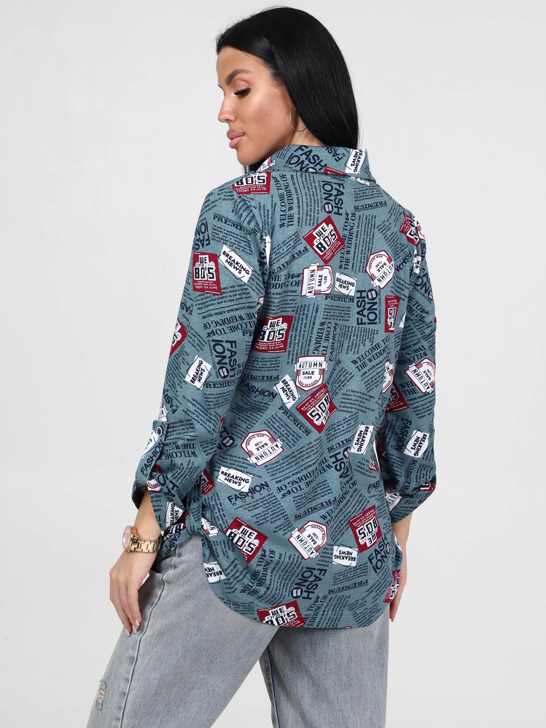 Женская туника ТК-274-РУБ / Оливка, газета, босс