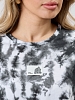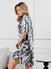 Туника молодежная из трикотажного полотна «кулирка» с набивным рисунком, прямого силуэта, с короткими втачными рукавами, горловиной овальной формы, обработанной притачной бейкой из основного материала, с разрезами в боковых швах. По центру полочки рядом с горловиной настрочен декоративный элемент-нашивка.