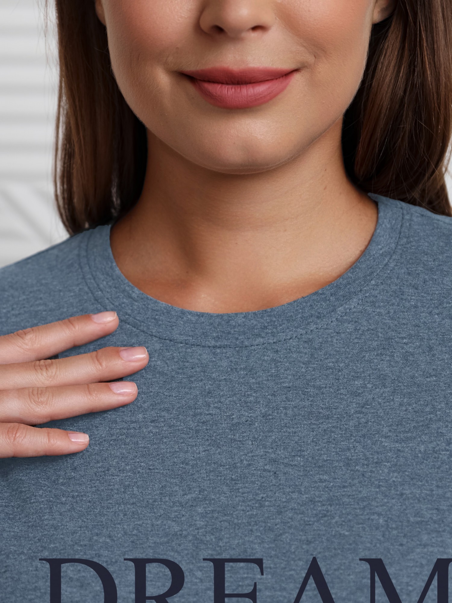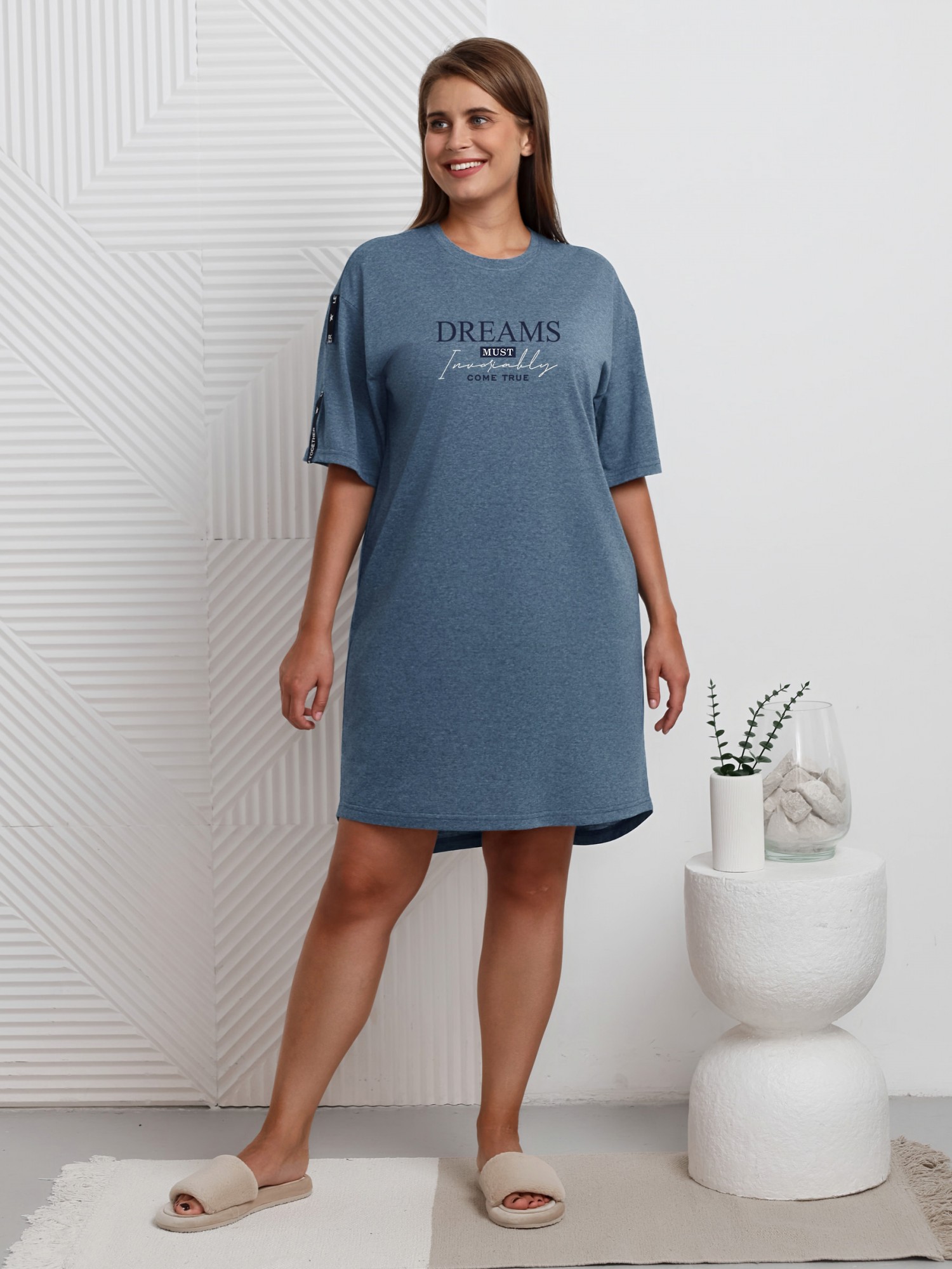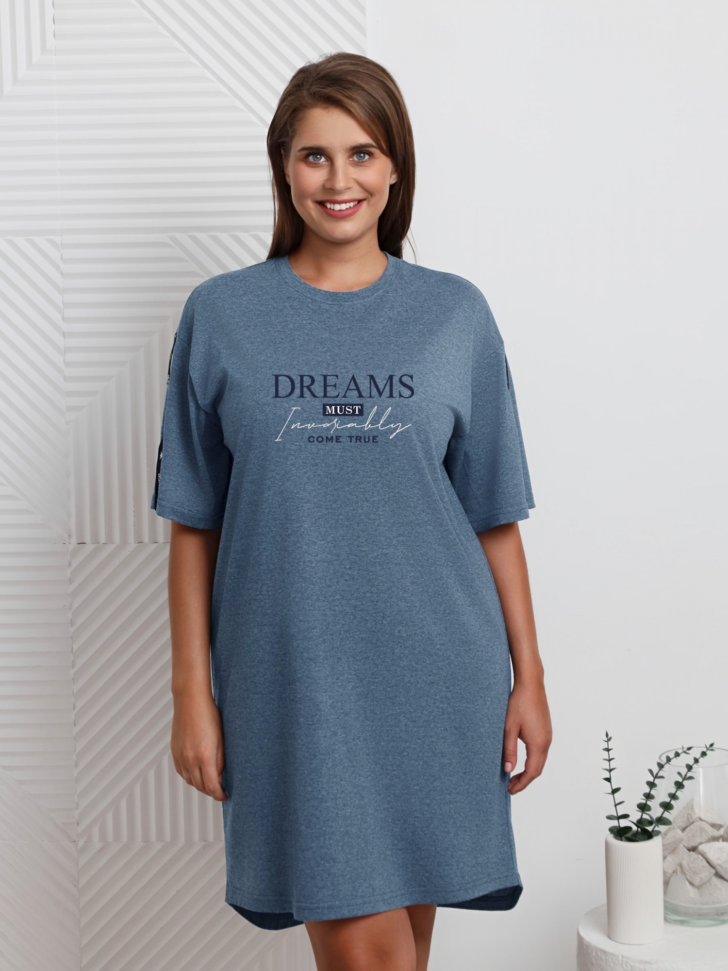 Туника женская из гладкокрашеного «меланжированного» трикотажного полотна «кулирка» прямого силуэта, горловиной овальной формы, обработанной втачной планкой, короткими втачными рукавами и фигурным низом. На рукавах модным элементом является отделка декоративной лентой, продетой в две обметанные петли. На полочке выполнен принт в технике «шелкографии».