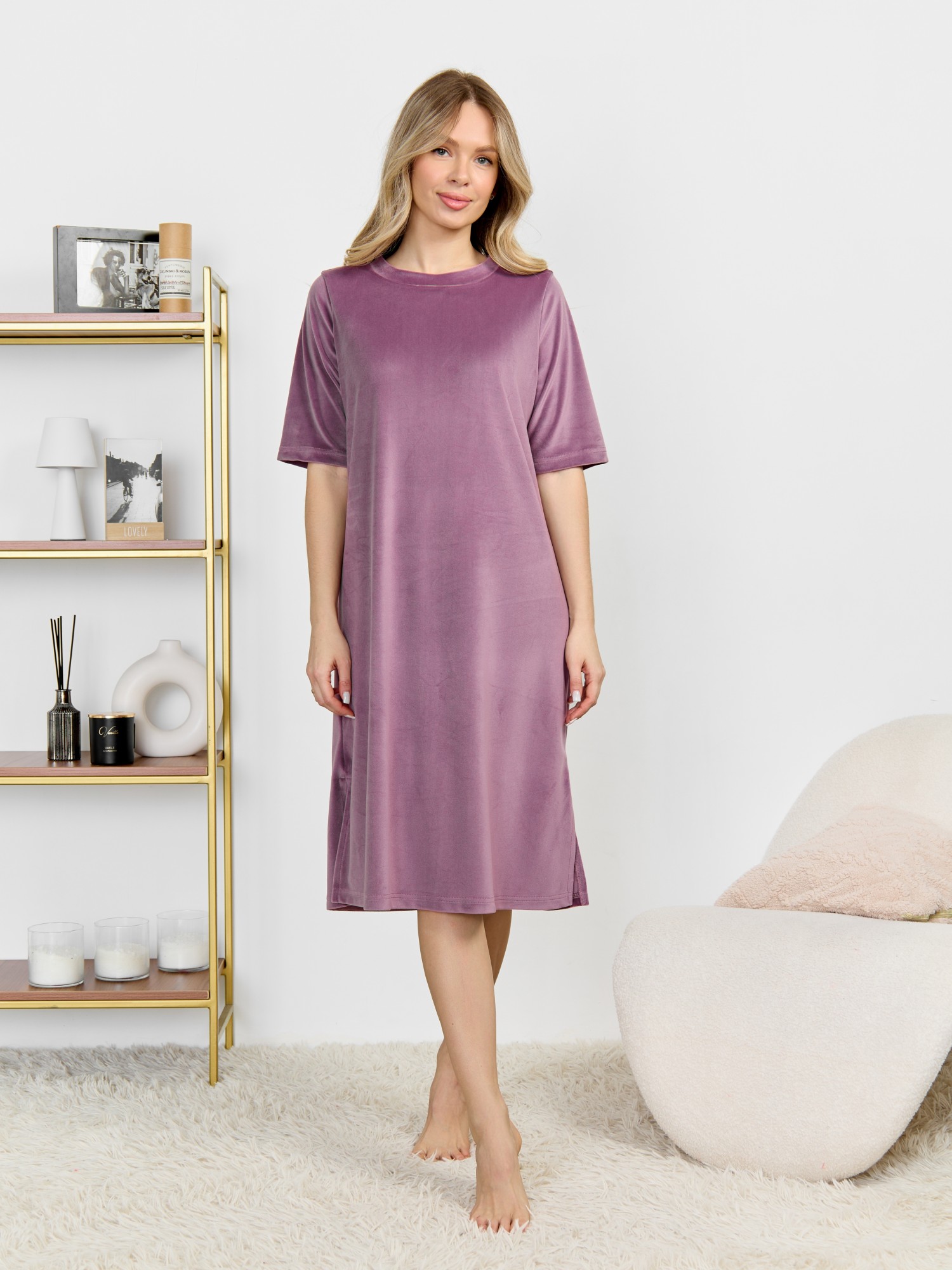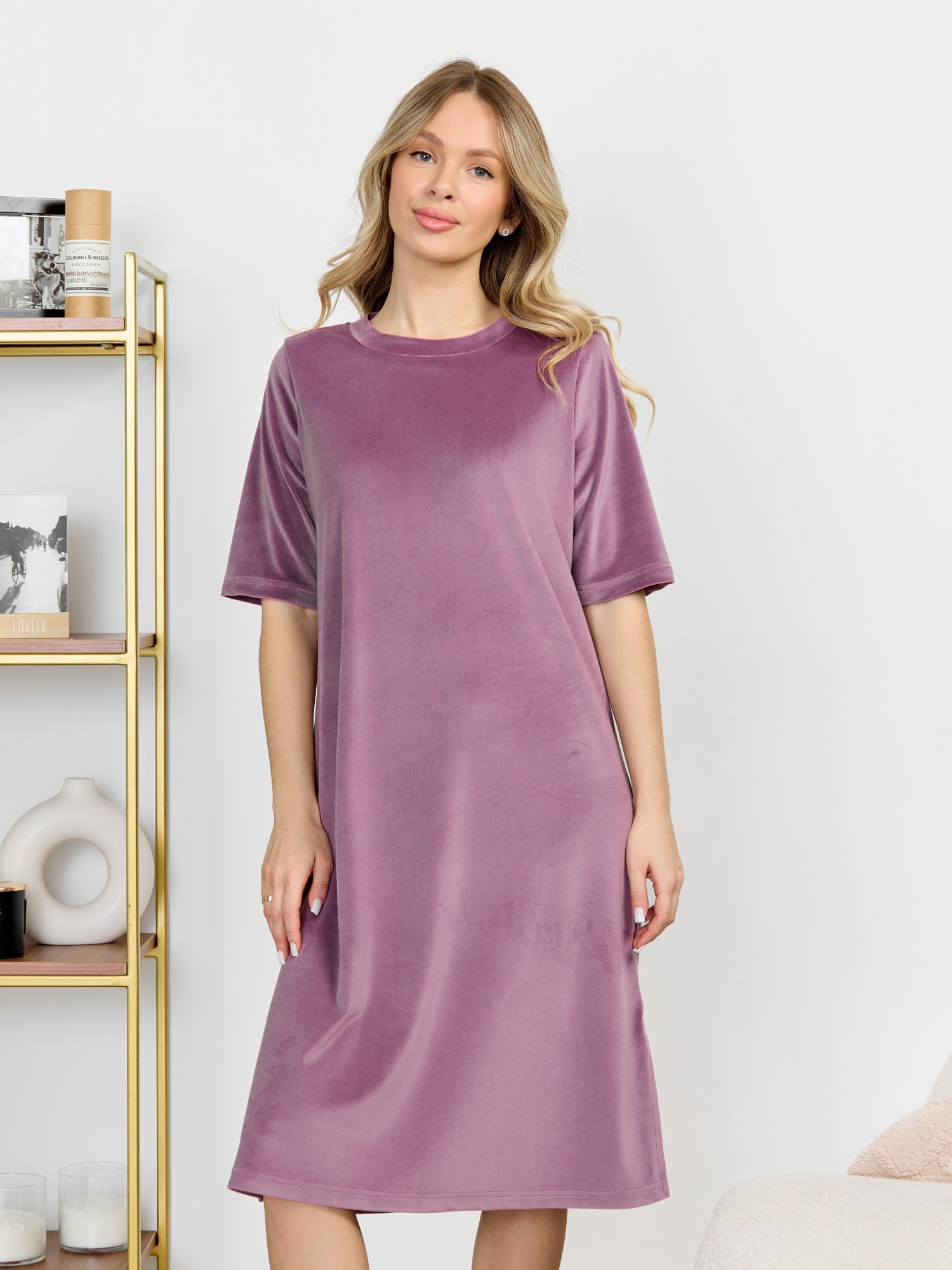 Туника женская из гладкокрашенного полотна «велюр стрейч», свободного покроя, с короткими втачными рукавами, горловиной овальной формы, обработанной втачной планкой и разрезами в боковых швах.