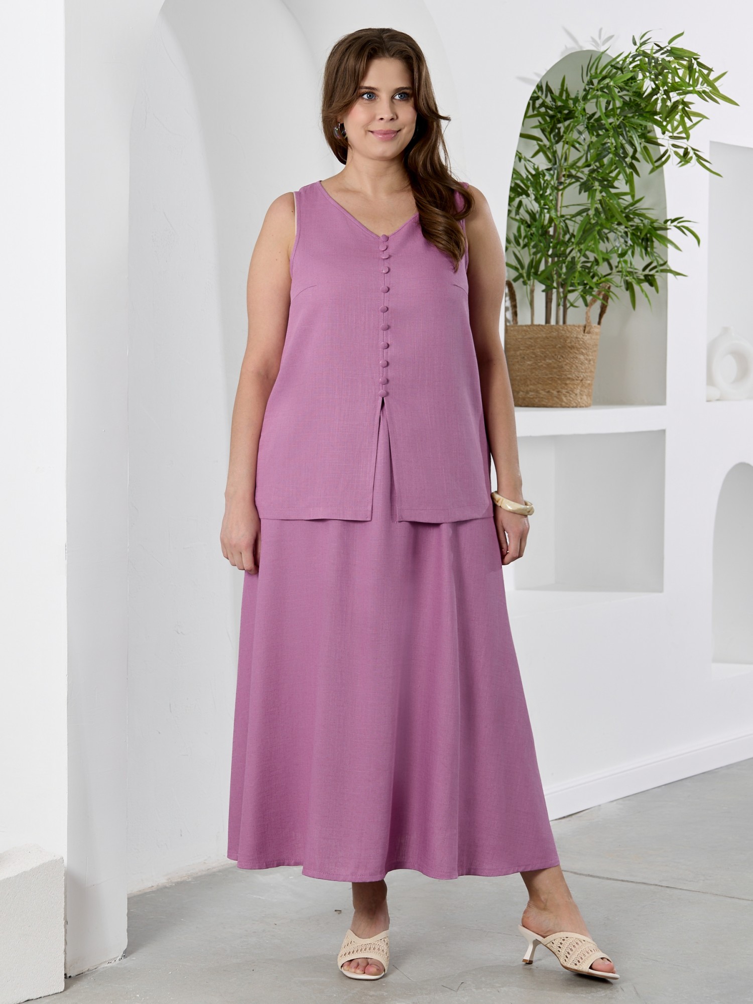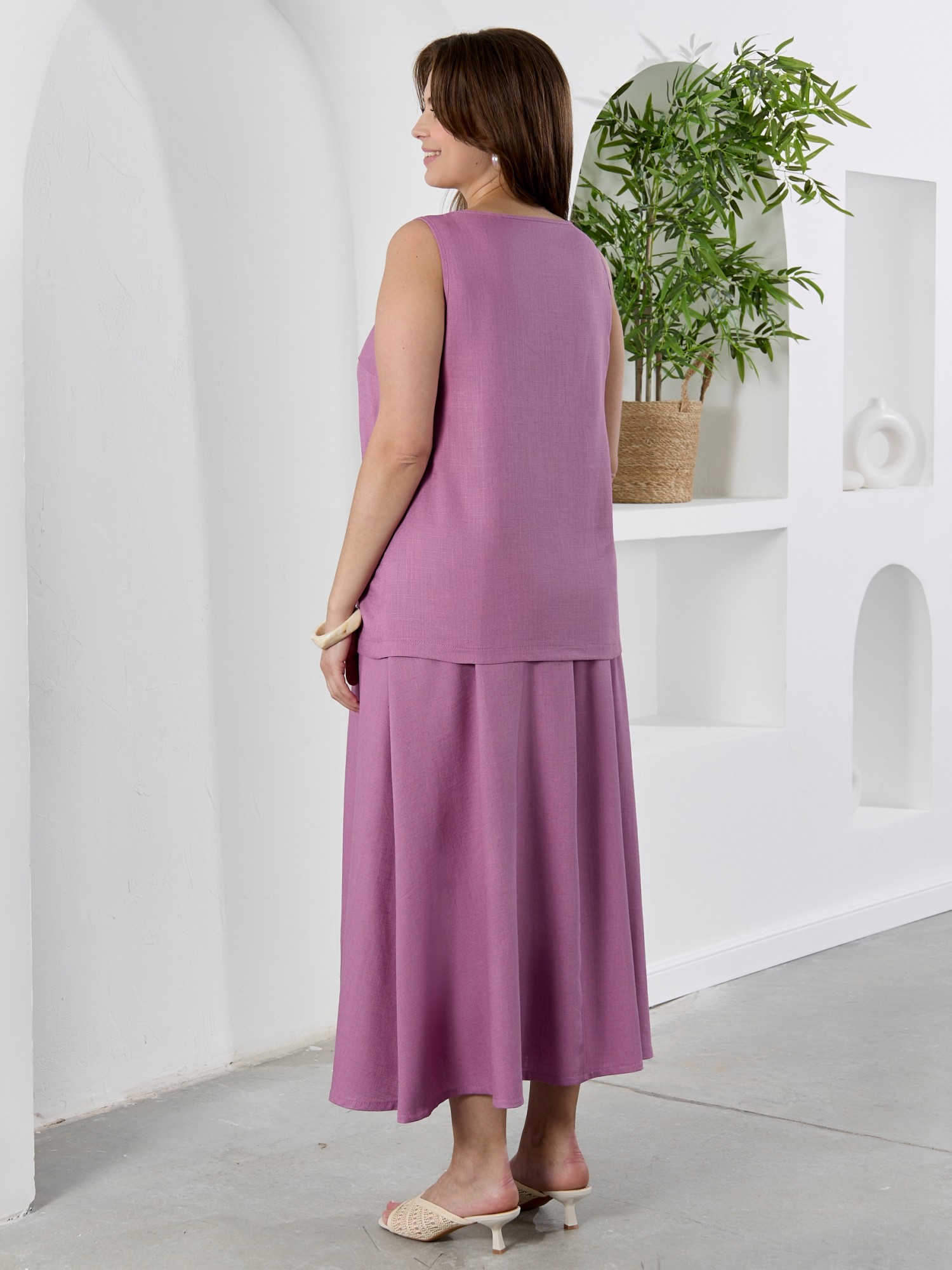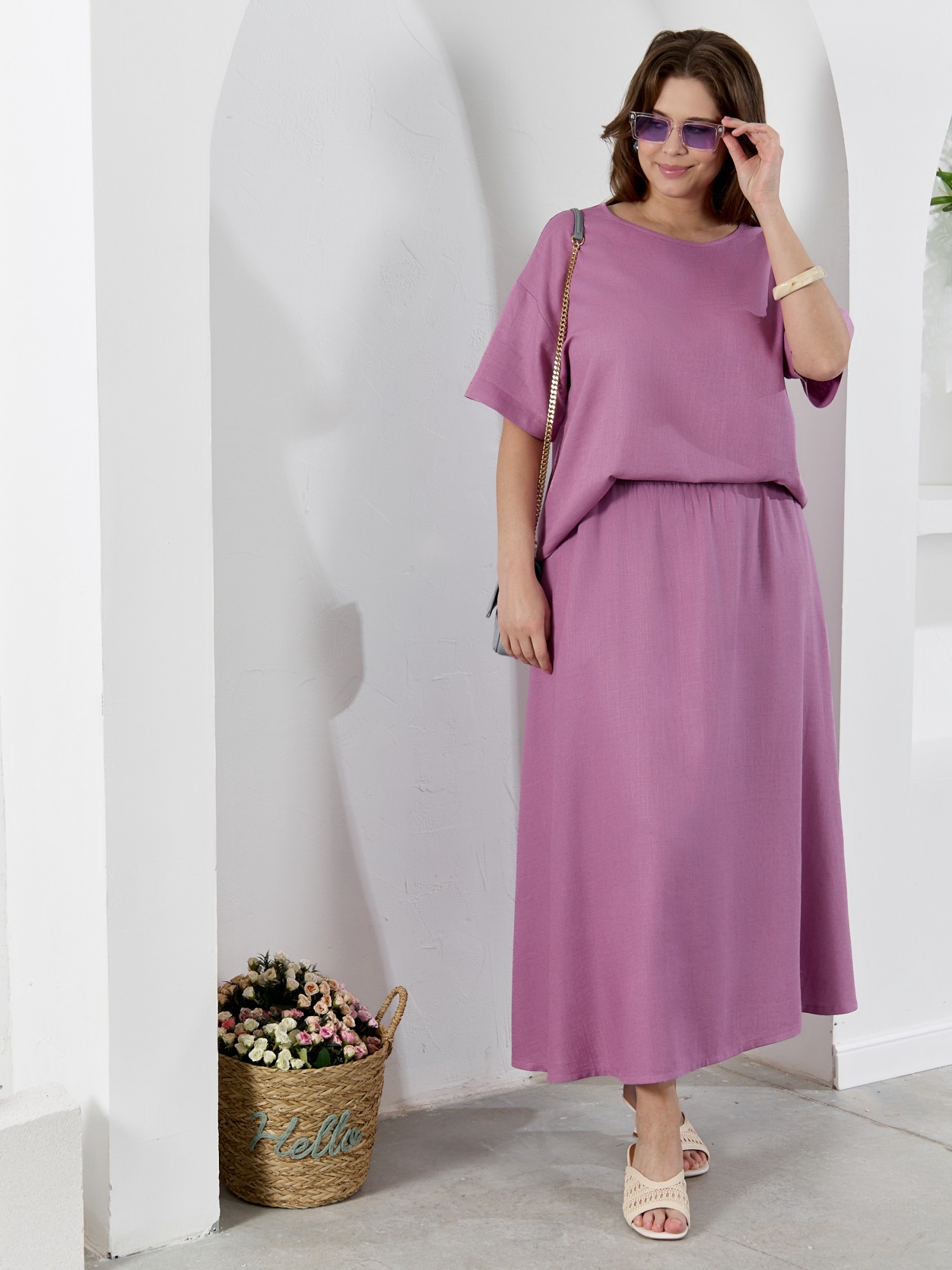 Юбка женская из гладкокрашеного тканого полотна, удлиненная, свободная, с карманами в боковых швах, на притачном поясе с эластичной тесьмой внутри.