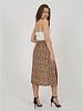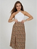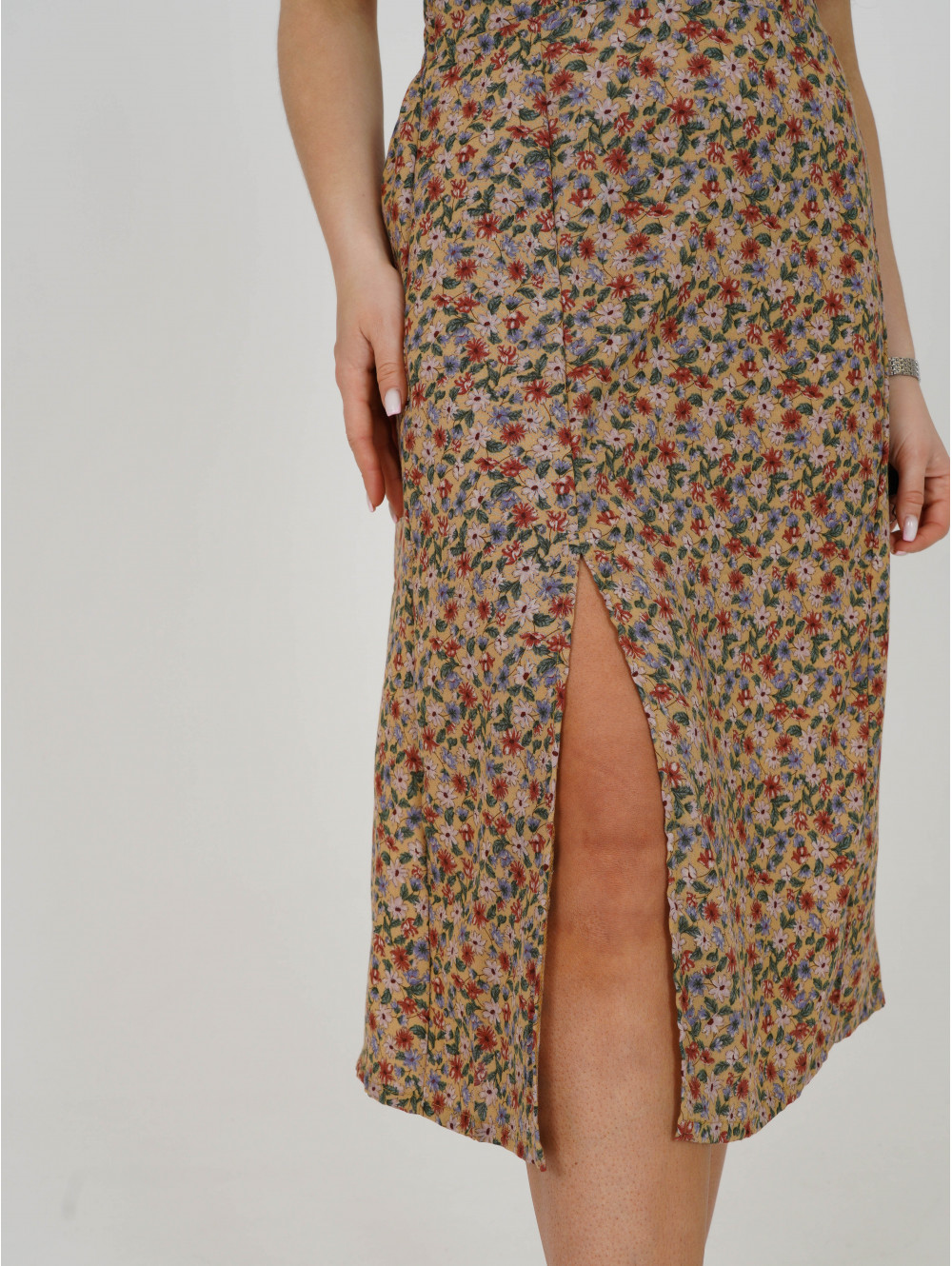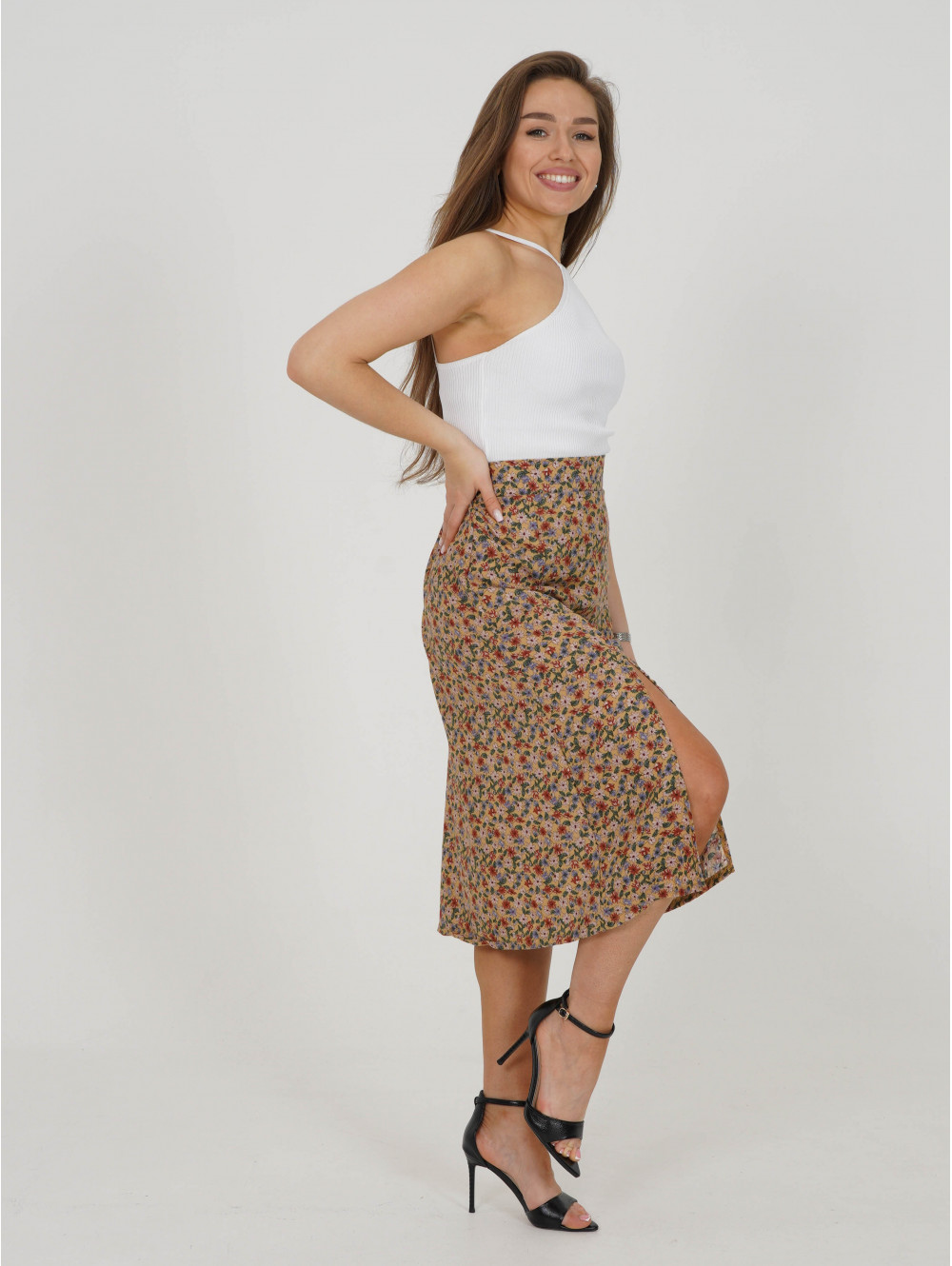 Юбка Хельга в форме трапеции с высокой посадкой. Крой обеспечивает идеальную посадку. Средняя длина чуть ниже колена в сочетании с разрезом на бедре зрительно вытягивает и стройнит, выгодно подчеркивает красоту женских ног, что делает ее более женственной. Не имеет декоративных элементов.