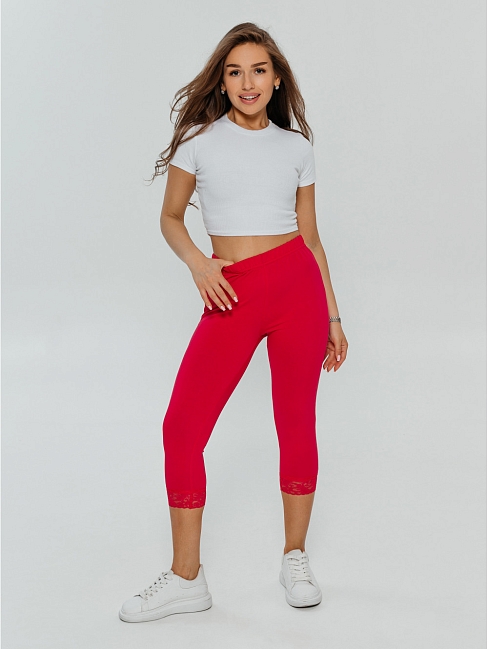Женские бриджи КРУЖЕВО изготовлены из хлопкового материала с добавлением лайкры. По низу брючин кружево. Лайкра в составе материала убережет изделие от растяжения в области колен и оно прослужит Вам дольше, и будет радовать своим внешним видом.Кулирная гладь изготовлена из экологически чистого сырья, имеет высокую воздухопроницаемость, хорошо впитывает влагу. Стирать при температуре 30- 40°C.