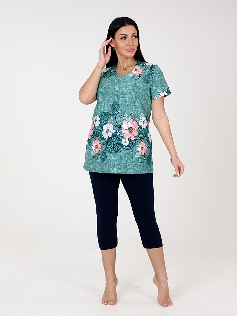 Бриджи женские, пояс на резинке, к низу зауженные, длина - ниже колен. Отличные удлиненные бриджи из эластичного материала для дома, дачи, прогулок, спорта. Высокая посадка обеспечит комфорт в любой ситуации. Хлопковая ткань приятна для тела.
