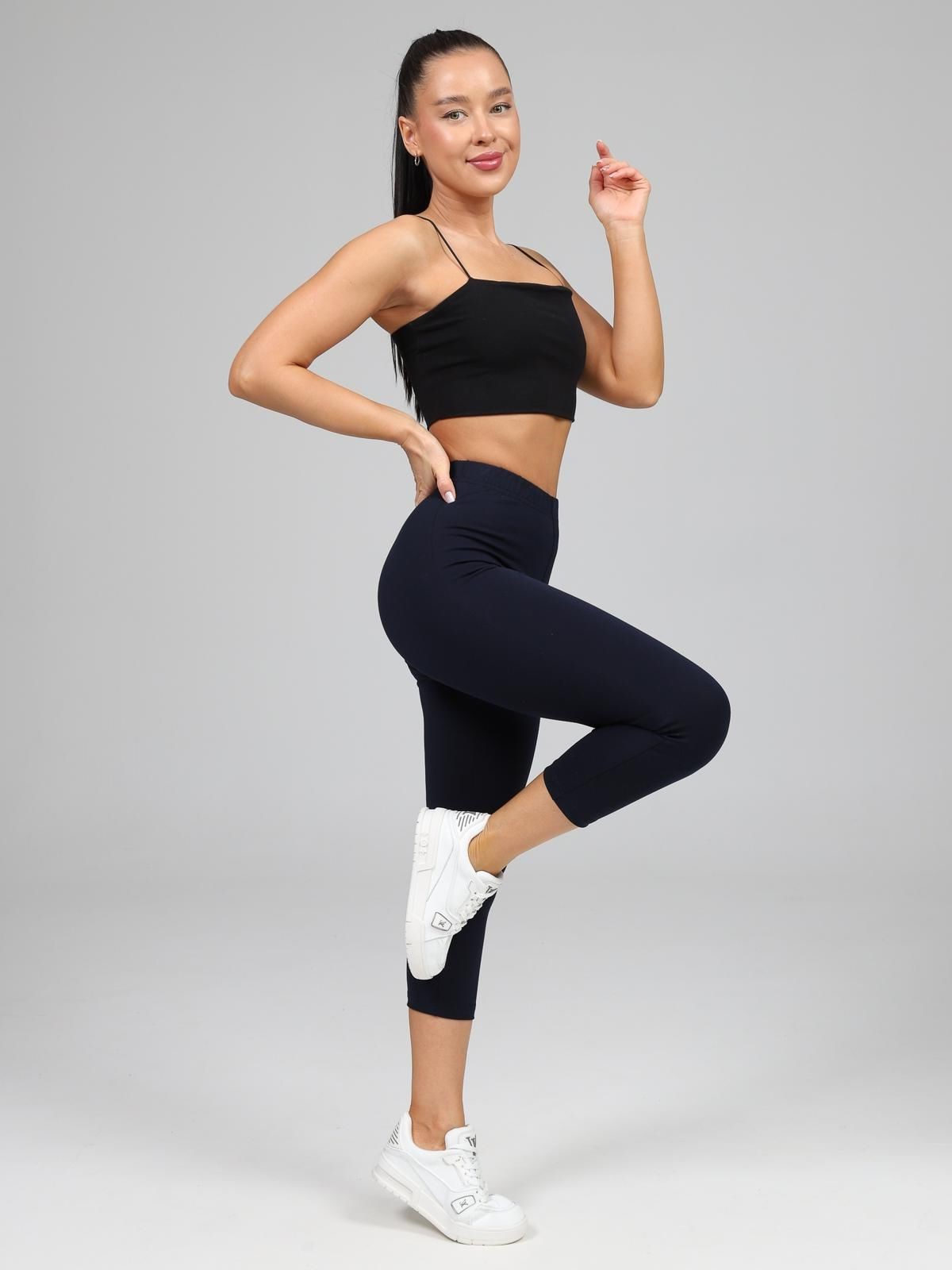 Женские бриджи из кулирки с лайкрой — это укороченные брюки до середины голени, выполненные из эластичного трикотажа. Кулирка — тонкий трикотаж с «плетением косичкой», а лайкра (эластан) добавляет материалу эластичность. Такие капри подходят для повседневной носки, спорта, дома или отдыха.