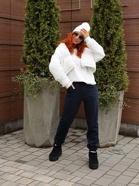 Женские брюки из футера с мехом — это тёплая и комфортная одежда, подходящая для повседневной носки, спорта и дома. Они изготавливаются из трикотажного материала с мягким ворсом с внутренней стороны, что обеспечивает дополнительное тепло.