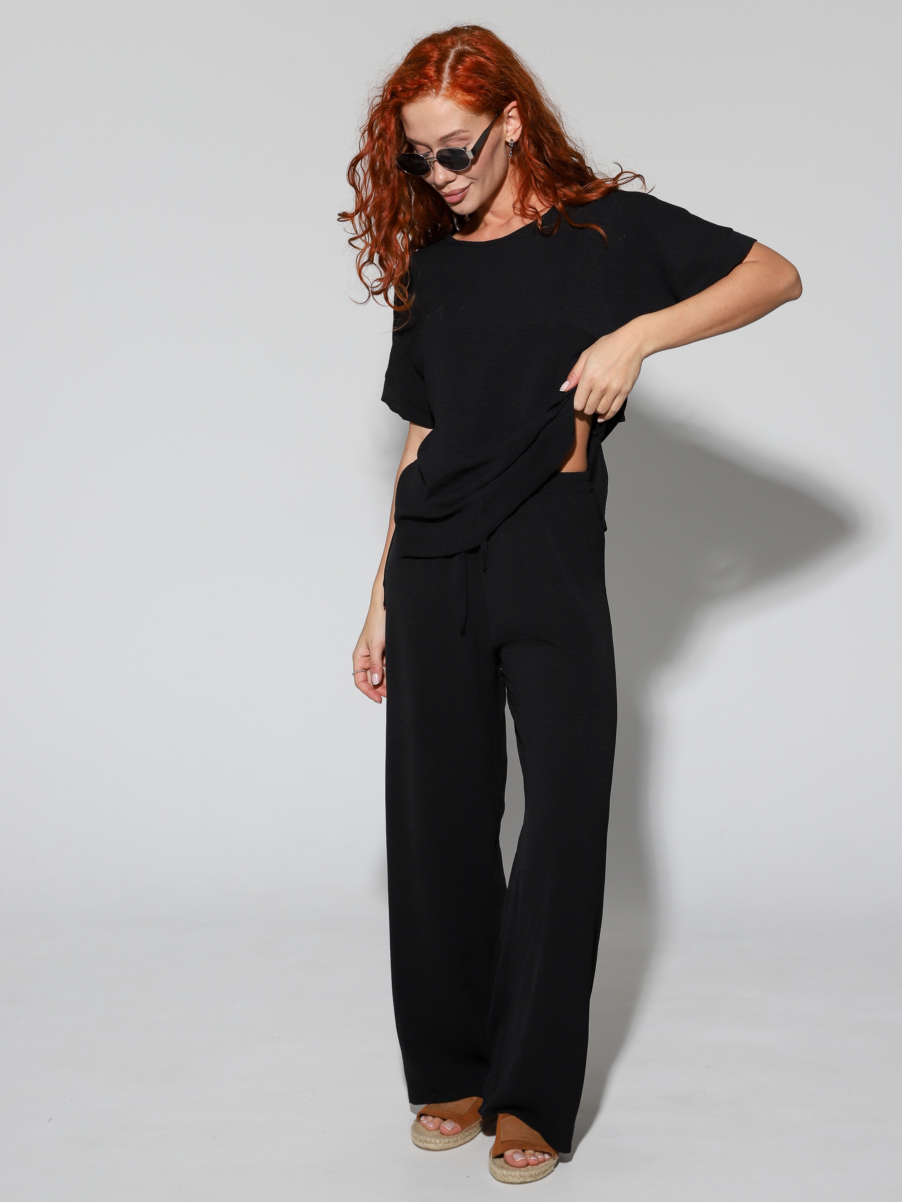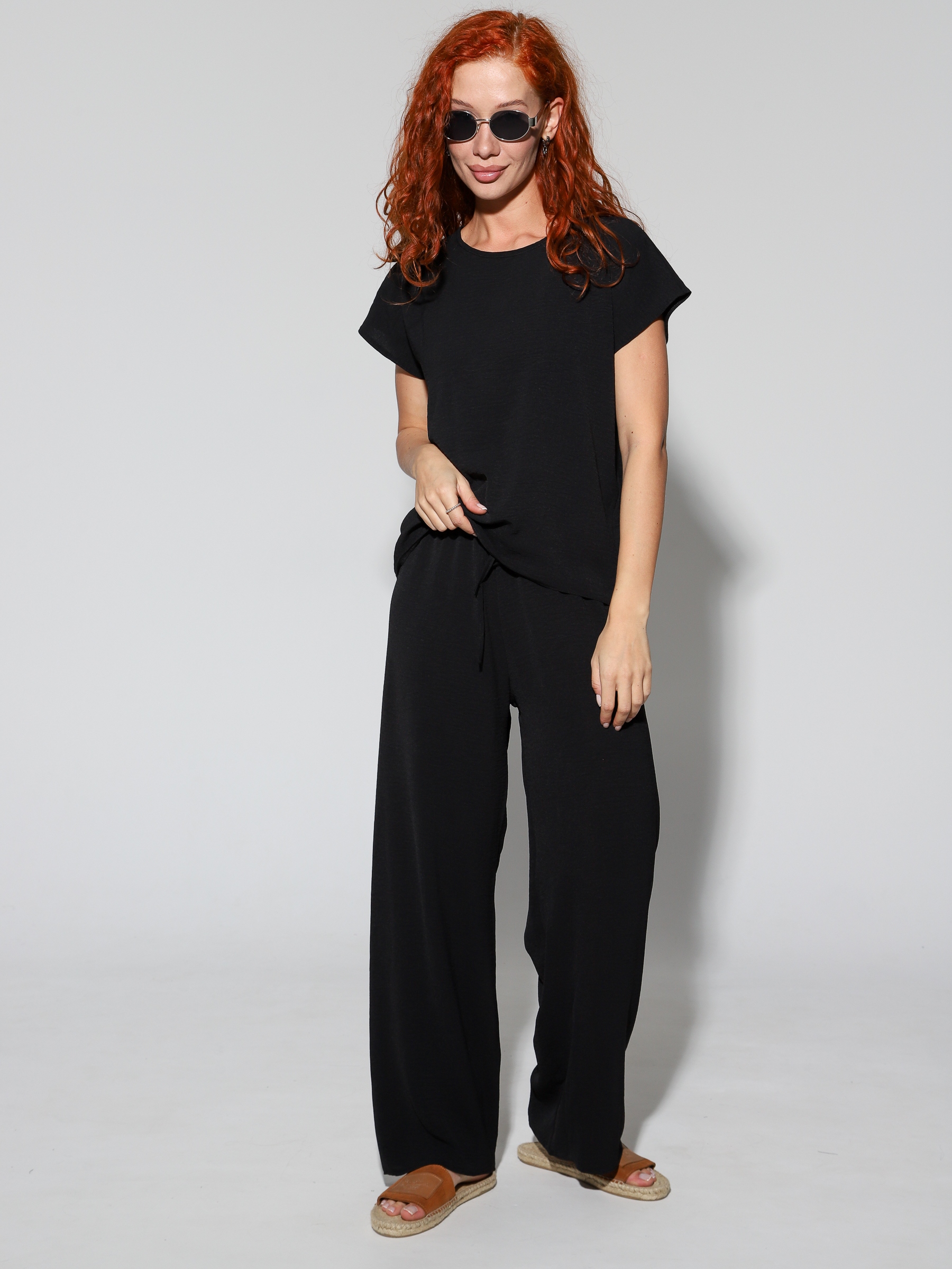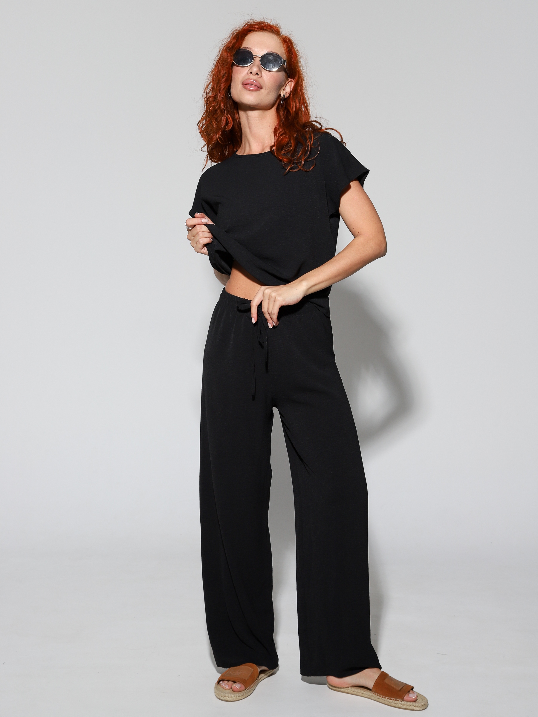 Женские свободные брюки из жатки — это модель с характерным «мятым» эффектом, который придаёт изделию особый стиль и практичность. Жатка — это ткань с рельефной поверхностью, созданной за счёт специального промышленного сжатия волокон. Такой материал не мнётся, не требует глажки и сохраняет форму после стирок.