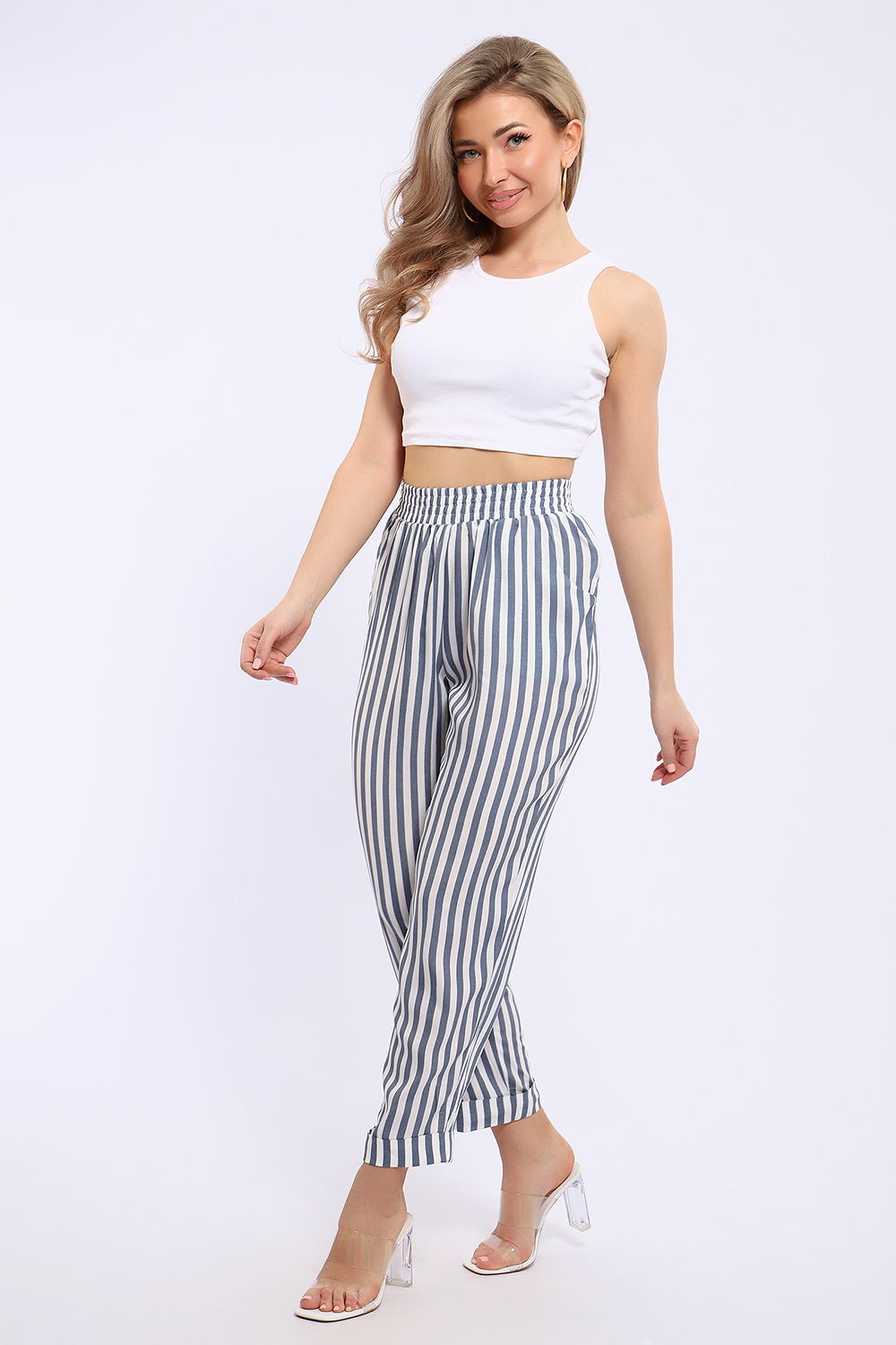 Летние женские брюки из тонкой воздухопроницаемой ткани штапель. Брюки свободного кроя, слегка зауженные к низу, имеют полуприлегающий силуэт. Нетугая резинка пояса позволяет регулировать посадку так, как вам удобно. Ткань штапель, состоящая из 100% вискозы не тянется, поэтому рекомендуем заказывать на размер больше того, который соответствует вашим меркам.