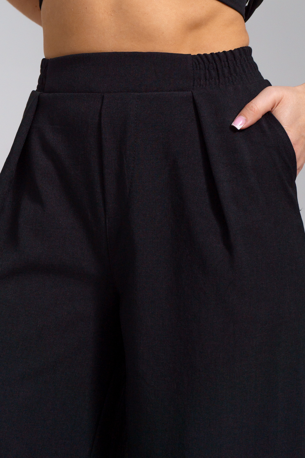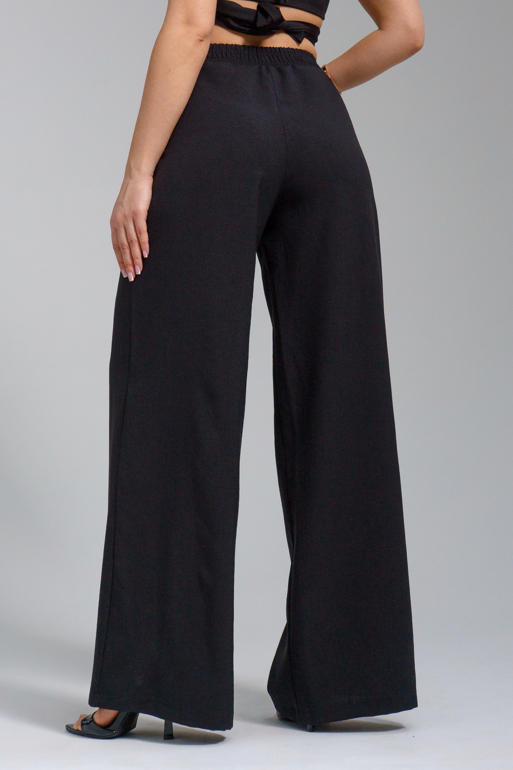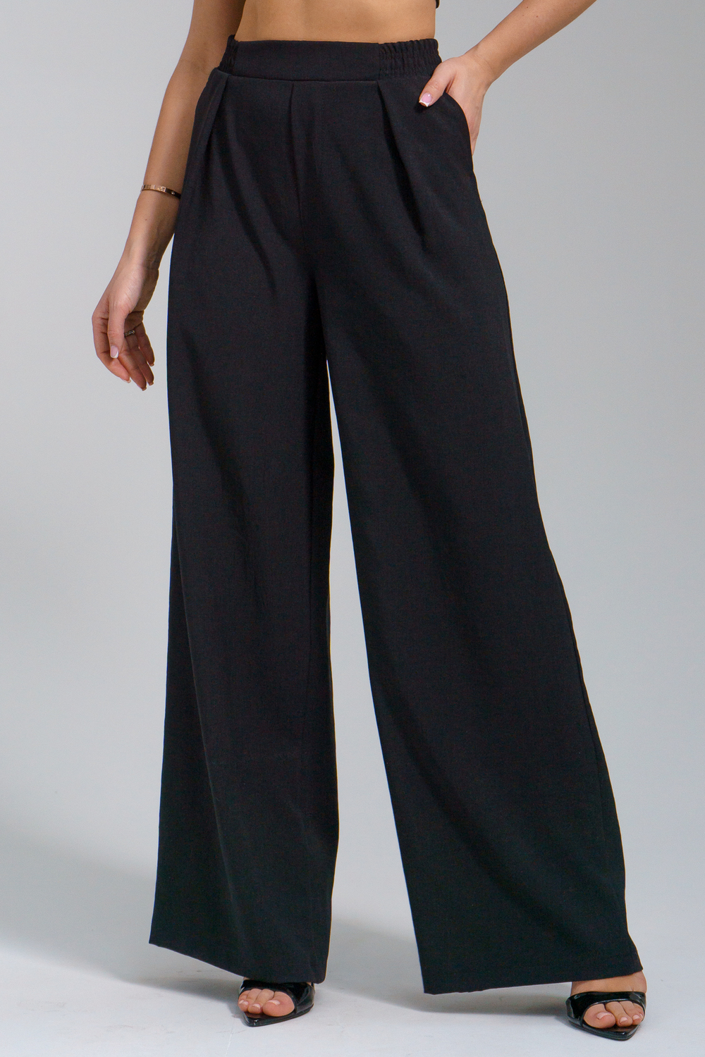 Брюки-палаццо мастхэв базового женского гардероба. Модель выполнена из качественной льняной ткани. Материал прочный, приятный на ощупь, хорошо струится и дышит. Изделие представлено в классических модных цветах. Широкий крой со складками и высокой талией создает красивый силуэт и обеспечивает удобную посадку, на любой тип фигуры. Пояс выполнен на специализированной поясной машине, что добавляет изделию качество на долгое время и эстетичность. На брюках имеются боковые карманы с усиленными закрепками на закрепочной машине. На модели представлен 46 размер - фигура соответствует параметрам размера. УХОД ЗА ИЗДЕЛИЕМ: бережная стирка при максимальной температуре 30С, не отбеливать, машинная сушка запрещена, глажение при 110С, профессиональная сухая чистка, стирать вывернутым наизнанку, глажение с использованием специальной сетки, стирать с изделиями похожих цветов . Брюки такого плана идеально впишутся в городской стиль, элегантность и комфорт, женственные силуэты и мягкие линии, расслабленные, нарочито небрежные образы, стильные и комфортные. Широкие брюки со складками модная одежда для женщин на любой случай жизни. Подойдут для стильных повседневных луков, офисных аутфитов, нарядных вечерних образов и прогулок.