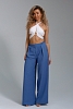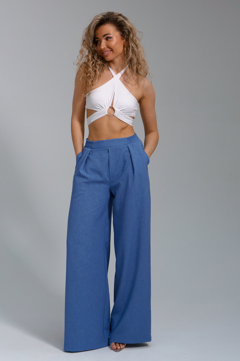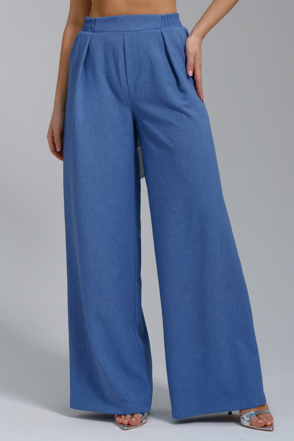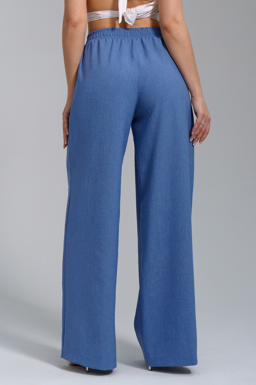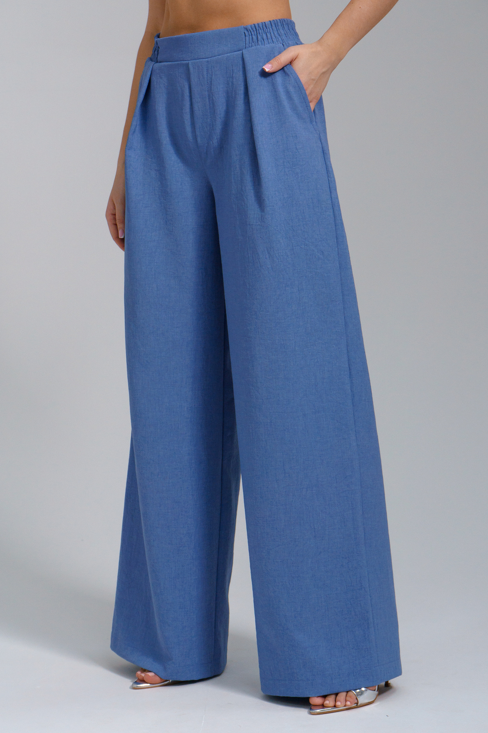 Брюки-палаццо мастхэв базового женского гардероба. Модель выполнена из качественной льняной ткани. Материал прочный, приятный на ощупь, хорошо струится и дышит. Изделие представлено в классических модных цветах. Широкий крой со складками и высокой талией создает красивый силуэт и обеспечивает удобную посадку, на любой тип фигуры. Пояс выполнен на специализированной поясной машине, что добавляет изделию качество на долгое время и эстетичность. На брюках имеются боковые карманы с усиленными закрепками на закрепочной машине. На модели представлен 46 размер - фигура соответствует параметрам размера. УХОД ЗА ИЗДЕЛИЕМ: бережная стирка при максимальной температуре 30С, не отбеливать, машинная сушка запрещена, глажение при 110С, профессиональная сухая чистка, стирать вывернутым наизнанку, глажение с использованием специальной сетки, стирать с изделиями похожих цветов . Брюки такого плана идеально впишутся в городской стиль, элегантность и комфорт, женственные силуэты и мягкие линии, расслабленные, нарочито небрежные образы, стильные и комфортные. Широкие брюки со складками модная одежда для женщин на любой случай жизни. Подойдут для стильных повседневных луков, офисных аутфитов, нарядных вечерних образов и прогулок.