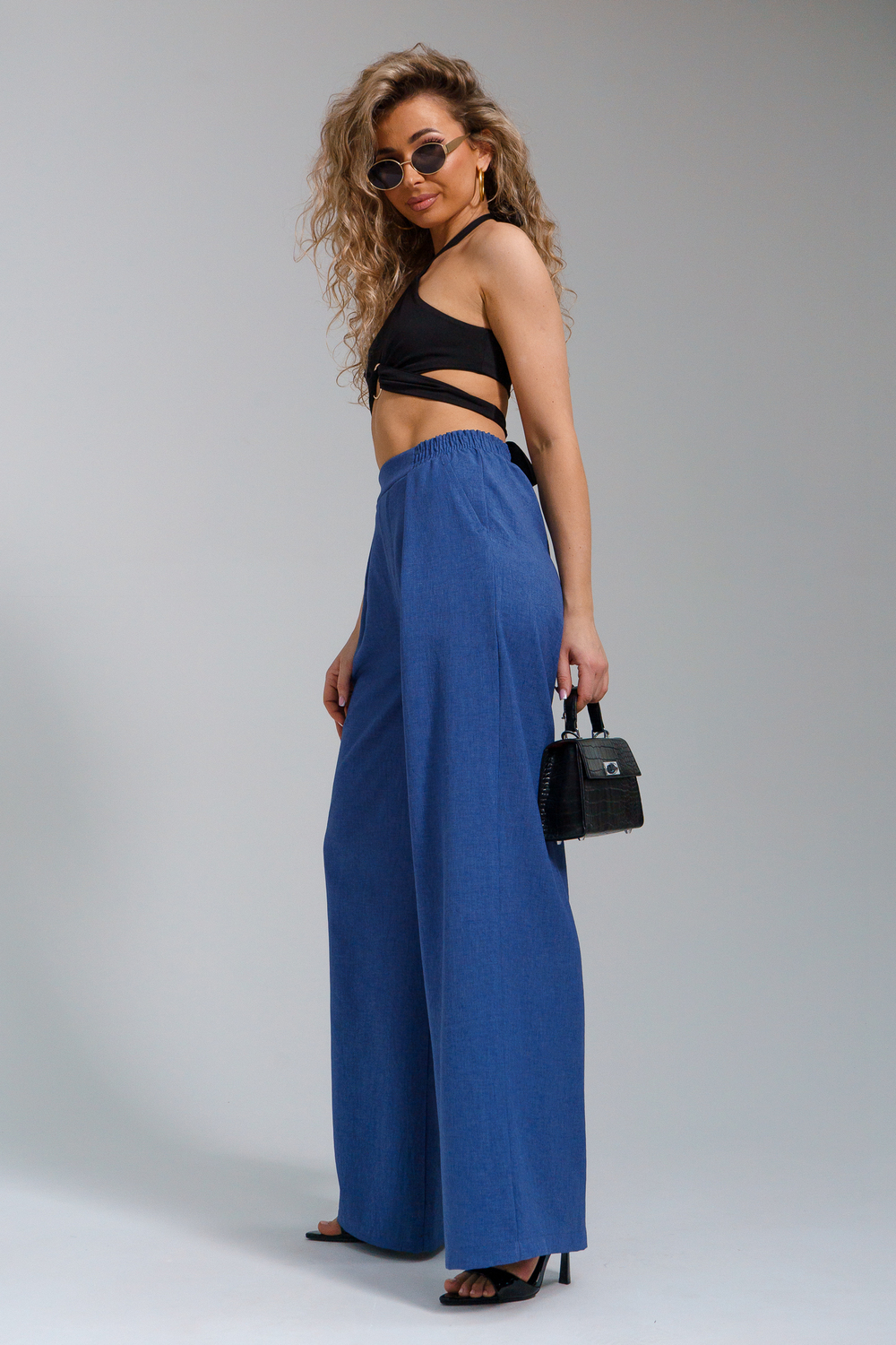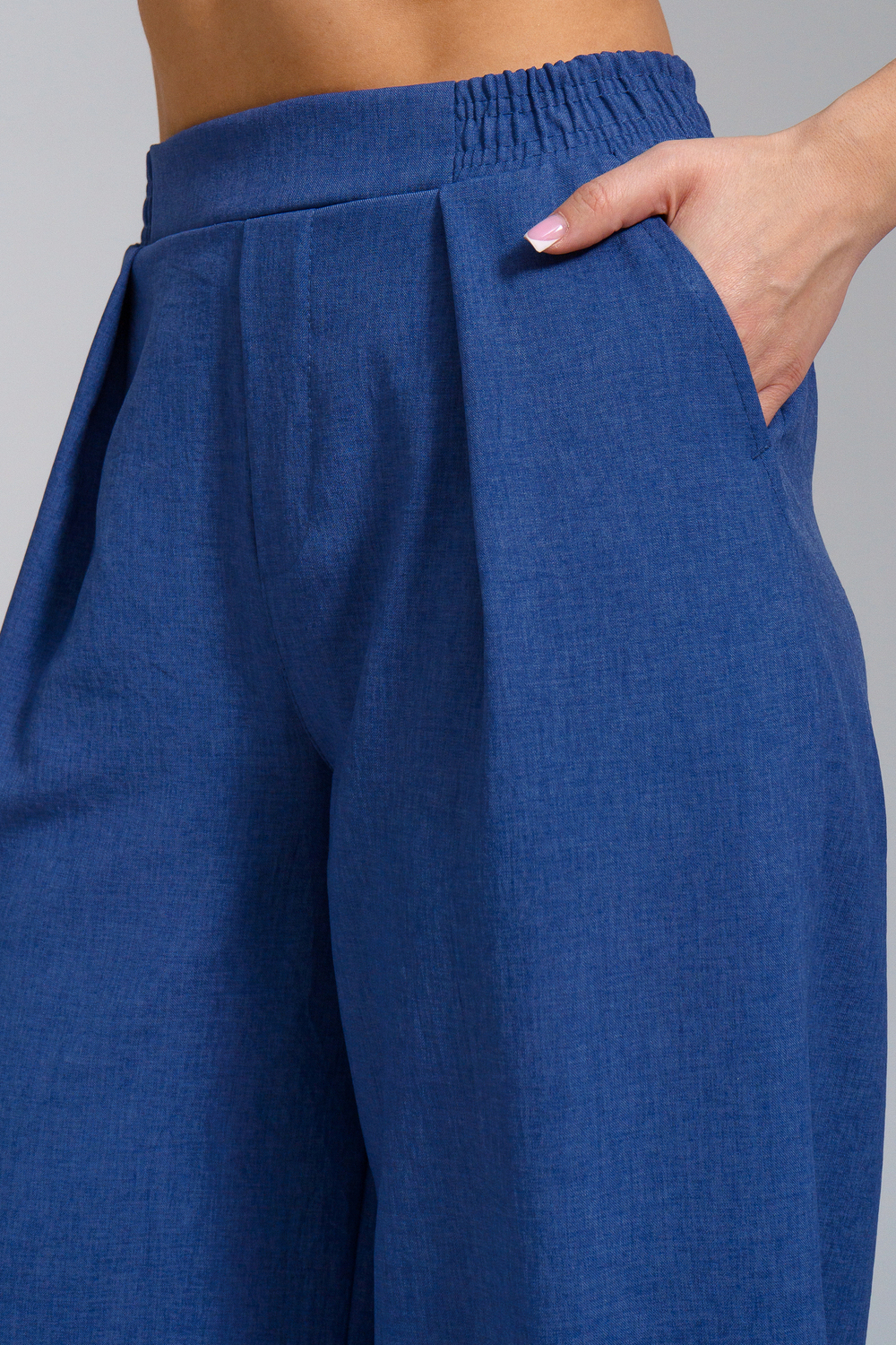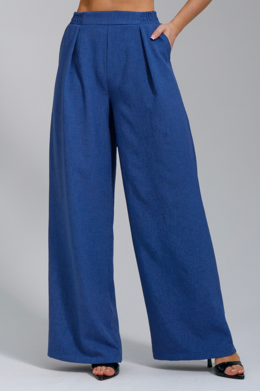 Брюки-палаццо мастхэв базового женского гардероба. Модель выполнена из качественной льняной ткани. Материал прочный, приятный на ощупь, хорошо струится и дышит. Изделие представлено в классических модных цветах. Широкий крой со складками и высокой талией создает красивый силуэт и обеспечивает удобную посадку, на любой тип фигуры. Пояс выполнен на специализированной поясной машине, что добавляет изделию качество на долгое время и эстетичность. На брюках имеются боковые карманы с усиленными закрепками на закрепочной машине. На модели представлен 46 размер - фигура соответствует параметрам размера. УХОД ЗА ИЗДЕЛИЕМ: бережная стирка при максимальной температуре 30С, не отбеливать, машинная сушка запрещена, глажение при 110С, профессиональная сухая чистка, стирать вывернутым наизнанку, глажение с использованием специальной сетки, стирать с изделиями похожих цветов . Брюки такого плана идеально впишутся в городской стиль, элегантность и комфорт, женственные силуэты и мягкие линии, расслабленные, нарочито небрежные образы, стильные и комфортные. Широкие брюки со складками модная одежда для женщин на любой случай жизни. Подойдут для стильных повседневных луков, офисных аутфитов, нарядных вечерних образов и прогулок.