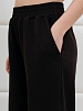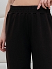 Брюки женские из трикотажного гладкокрашеного полотна «футер вискозный», слегка зауженные, стандартной длины, на притачном поясе с эластичной тесьмой внутри, с карманами в боковых швах. Правая и левая половины брюк состоят из двух частей, скроенных по косой, с отделочными строчками по шву стачивания. На нижних частях передних и задних половин застрочены вытачки.