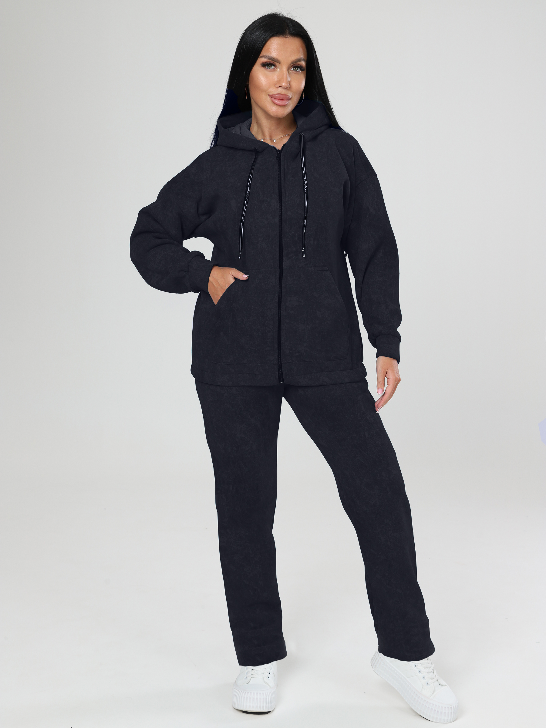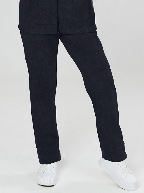 Брюки из футера с начесом. Брючки прямые, с двумя карманами. Пояс на резинке.