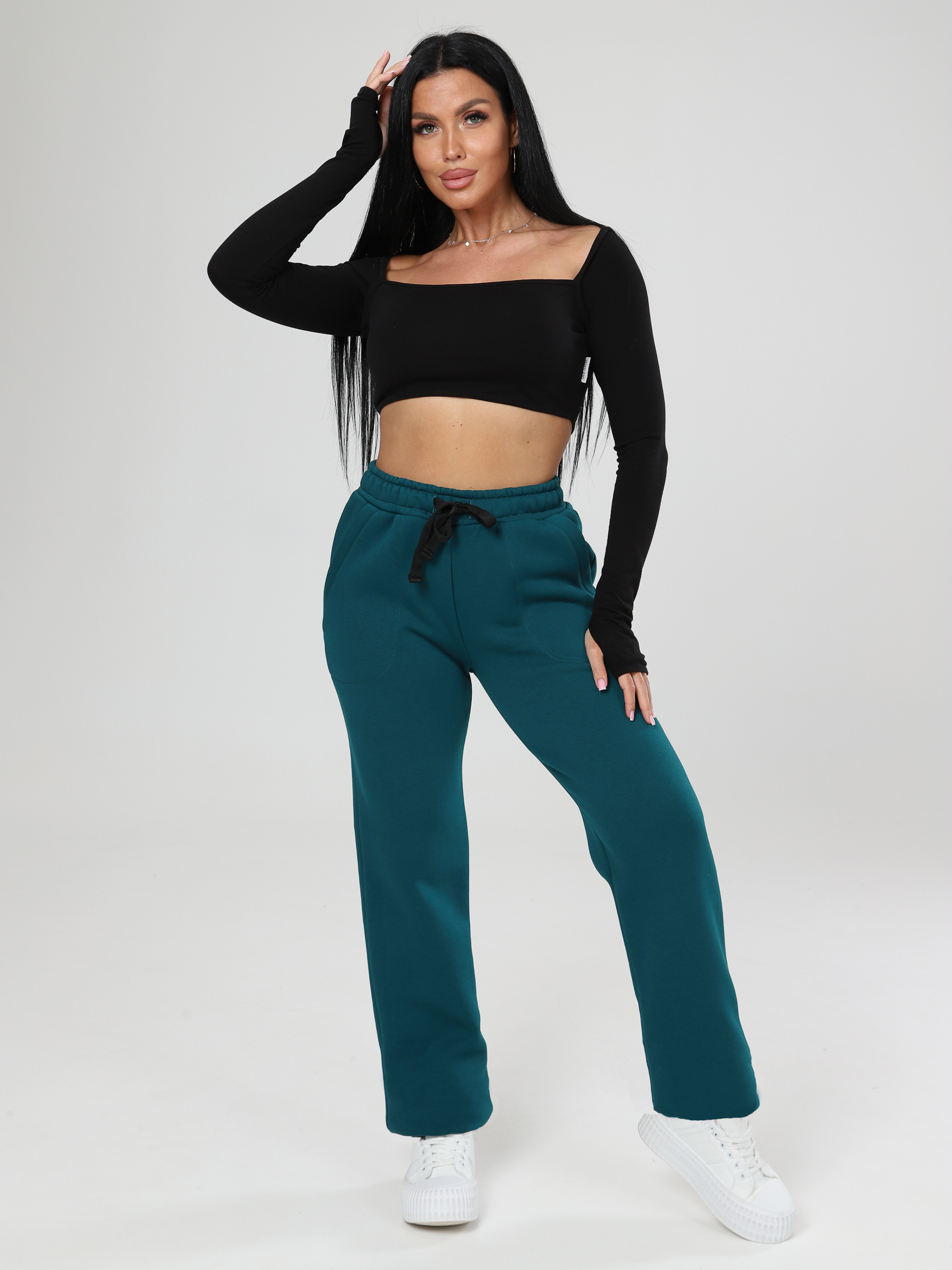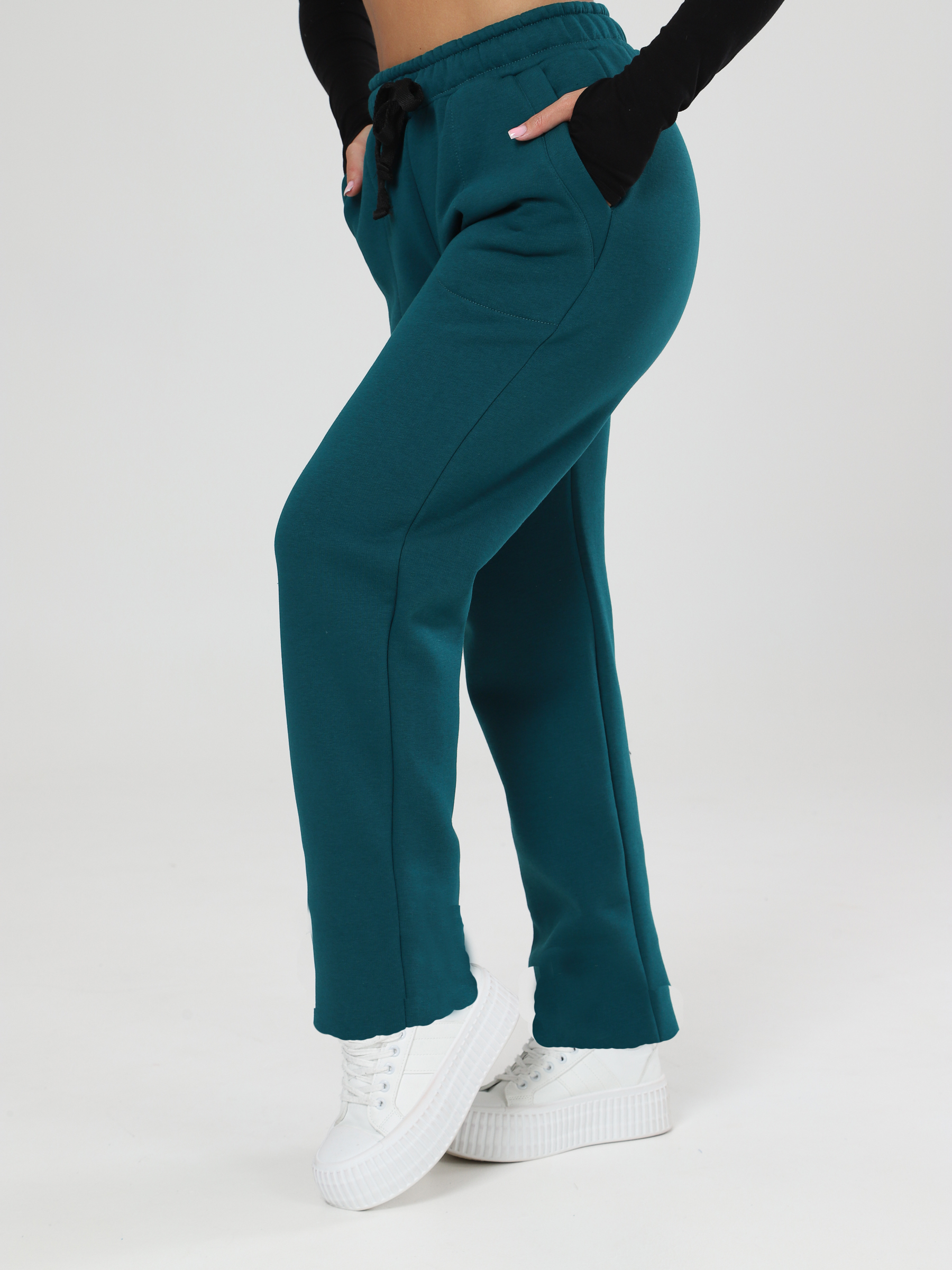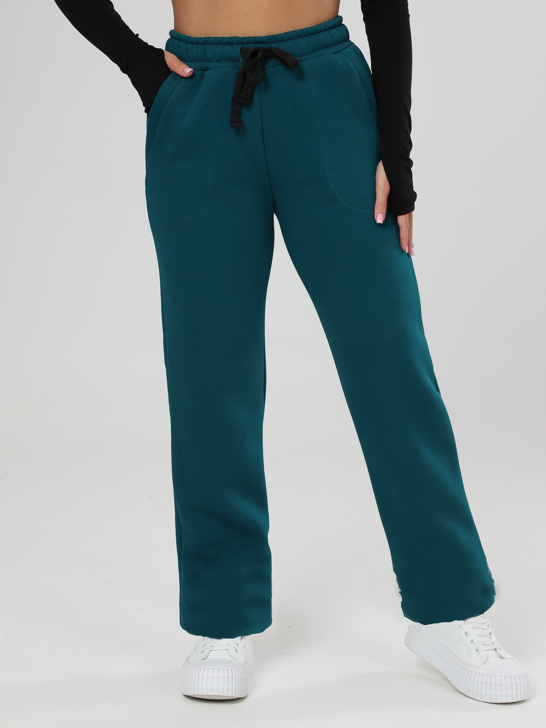 Брюки из футера с начесом. Брючки прямые, с двумя карманами. Пояс на резинке.
