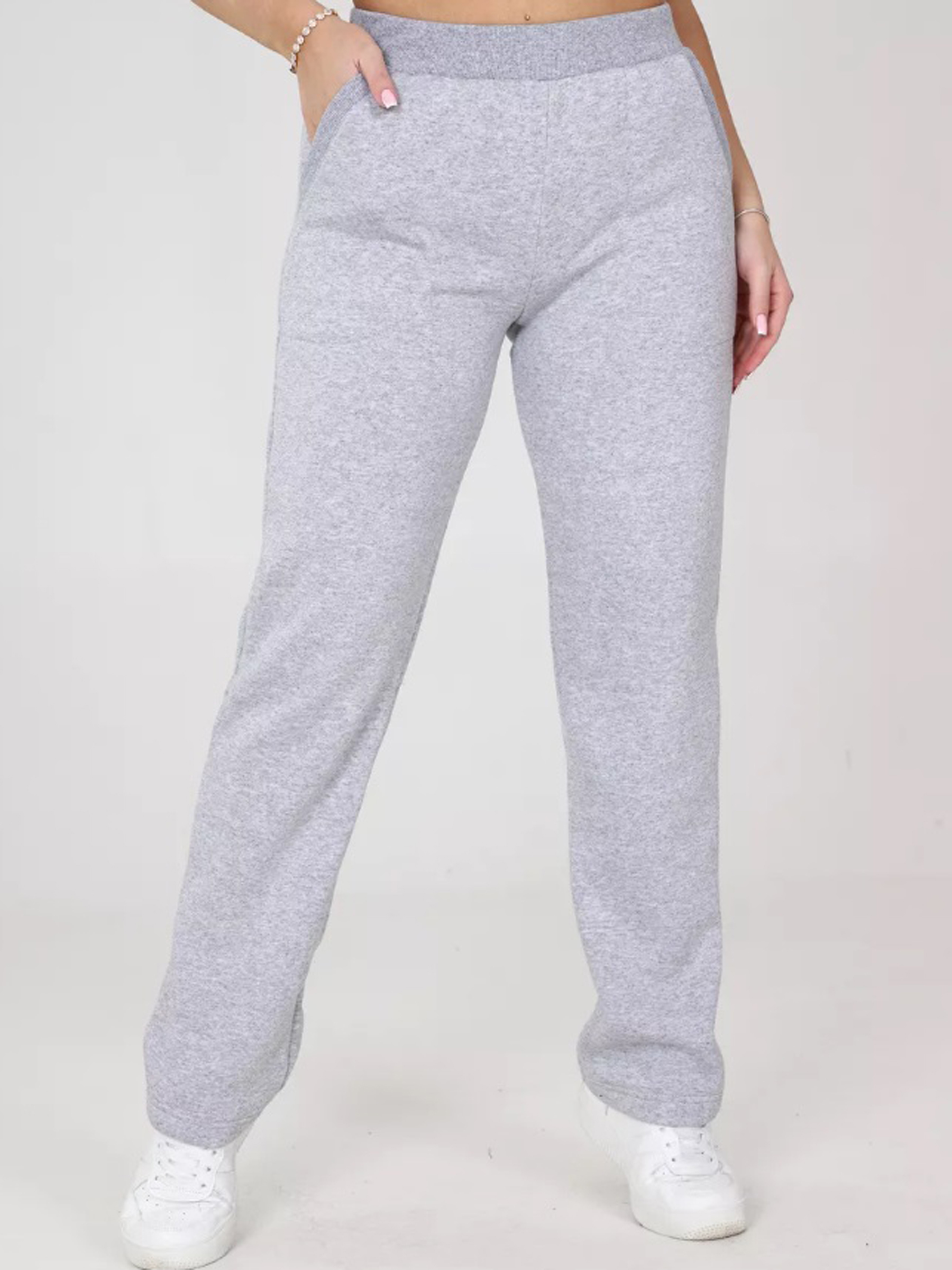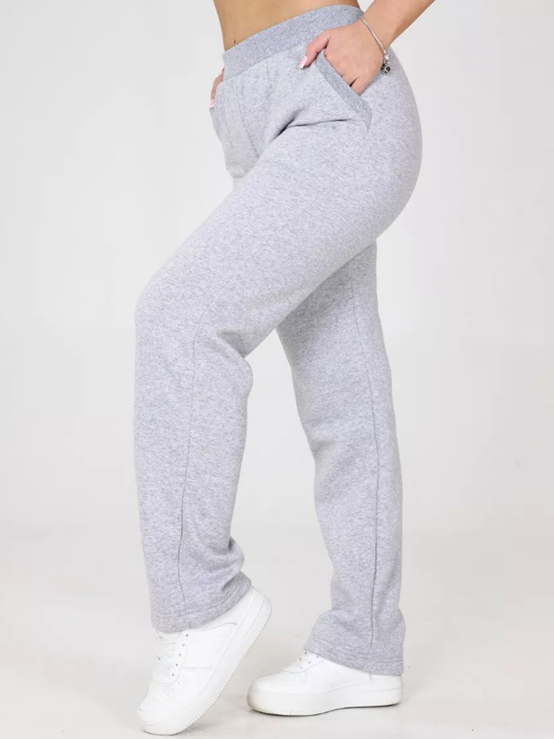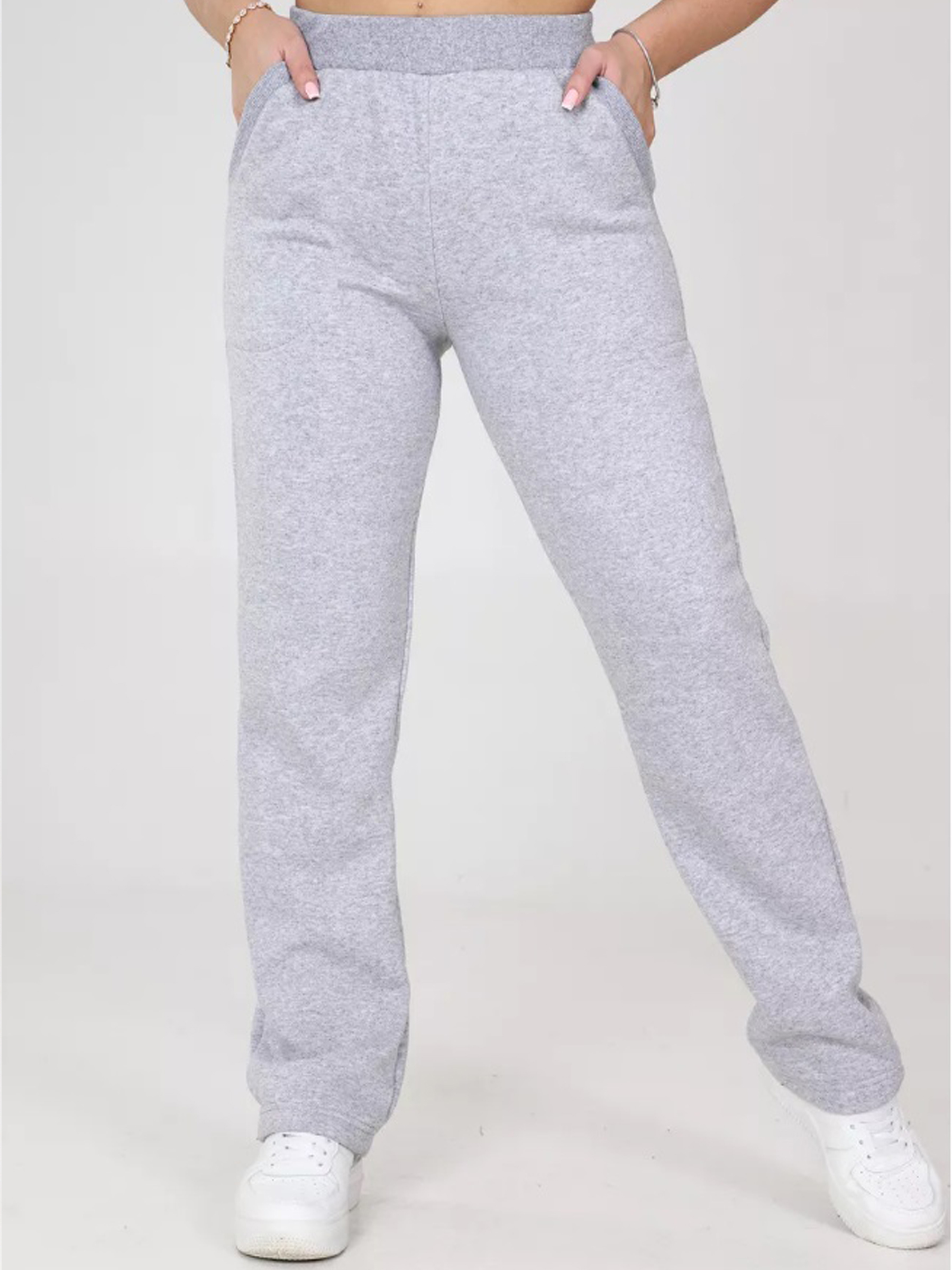 Брюки из футера с начесом. Брючки прямые, с двумя карманами. Пояс на резинке.