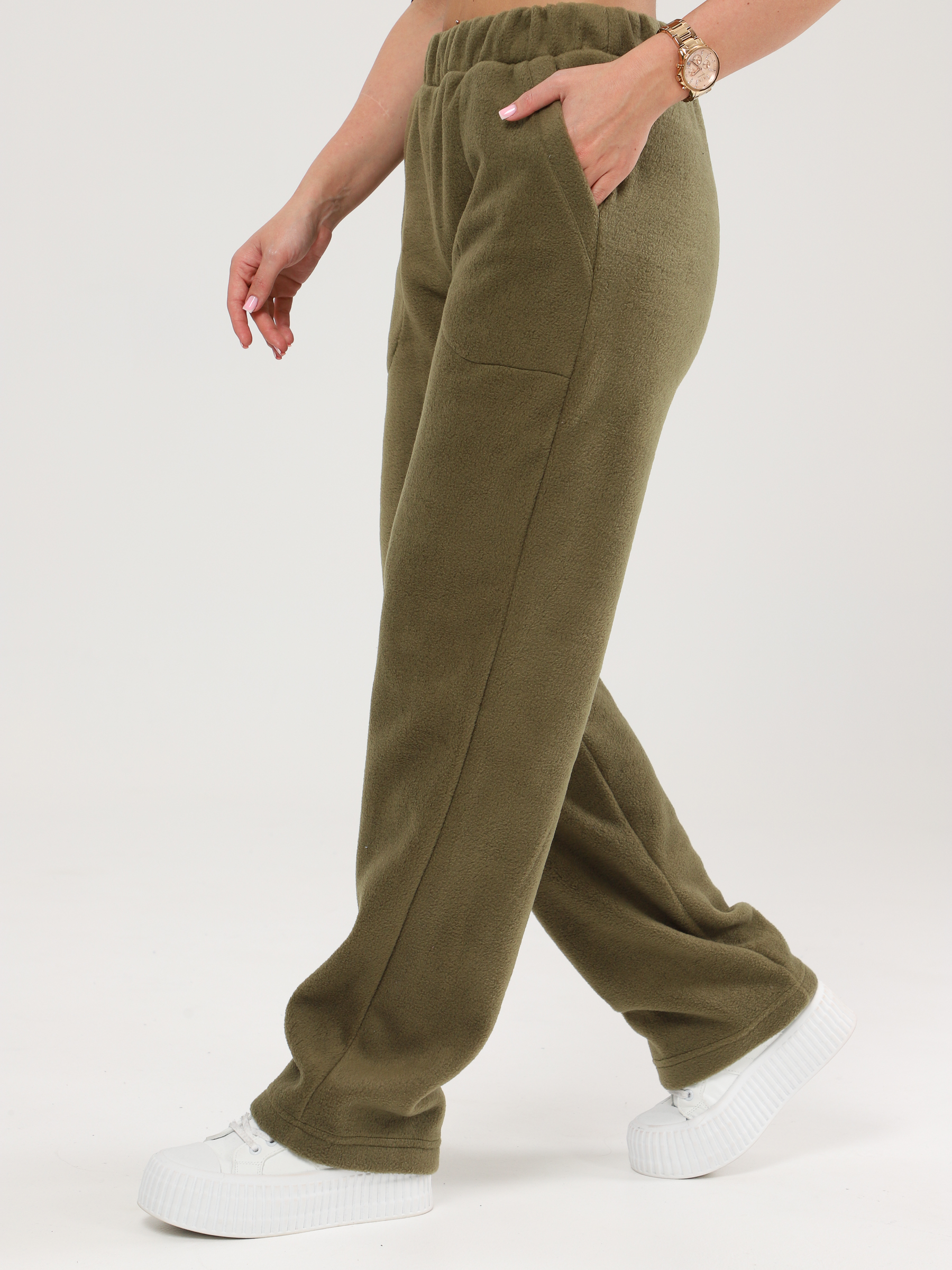 Теплые женские брюки из флиса с карманами. Брюки с высокой посадкой, пояс на эластичной резинке обеспечат удобную посадку на любой тип фигуры. Брюки женские из флиса хорошо подходят для прогулок и активного отдыха в холодную погоду осенью и зимой. Не требуют особого ухода, практически не мнутся и достаточно износостойкие. Брюки станут незаменимой вещью на каждый день в Вашем гардеробе.