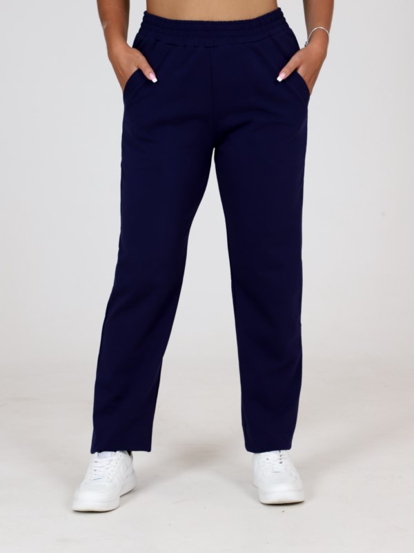 Брюки из футера, прямые, с 2-я прорезными карманами. Брюки футер - это универсальная модель, позволяющая создать как современный стильный образ, так и классический вариант для офиса и повседневной носки. Брюки женские классические, женские брюки с удобной посадкой имеют боковые карманы спереди, широкий мягкий пояс на резинке, отсутствие застежки позволяет удобно надевать и снимать их. Классические трендовые модные брюки, изготовлены из легкой и дышащей ткани, прекрасно подходят для офиса на прогулку и для повседневных образов в весенне - летний период. Брюки отлично садятся на фигуру любого типа, эластичный пояс на резинке и удобная лекало сделали женские штаны комфортными. Модель универсальна и подходит под классический, деловой и спортивный образы.