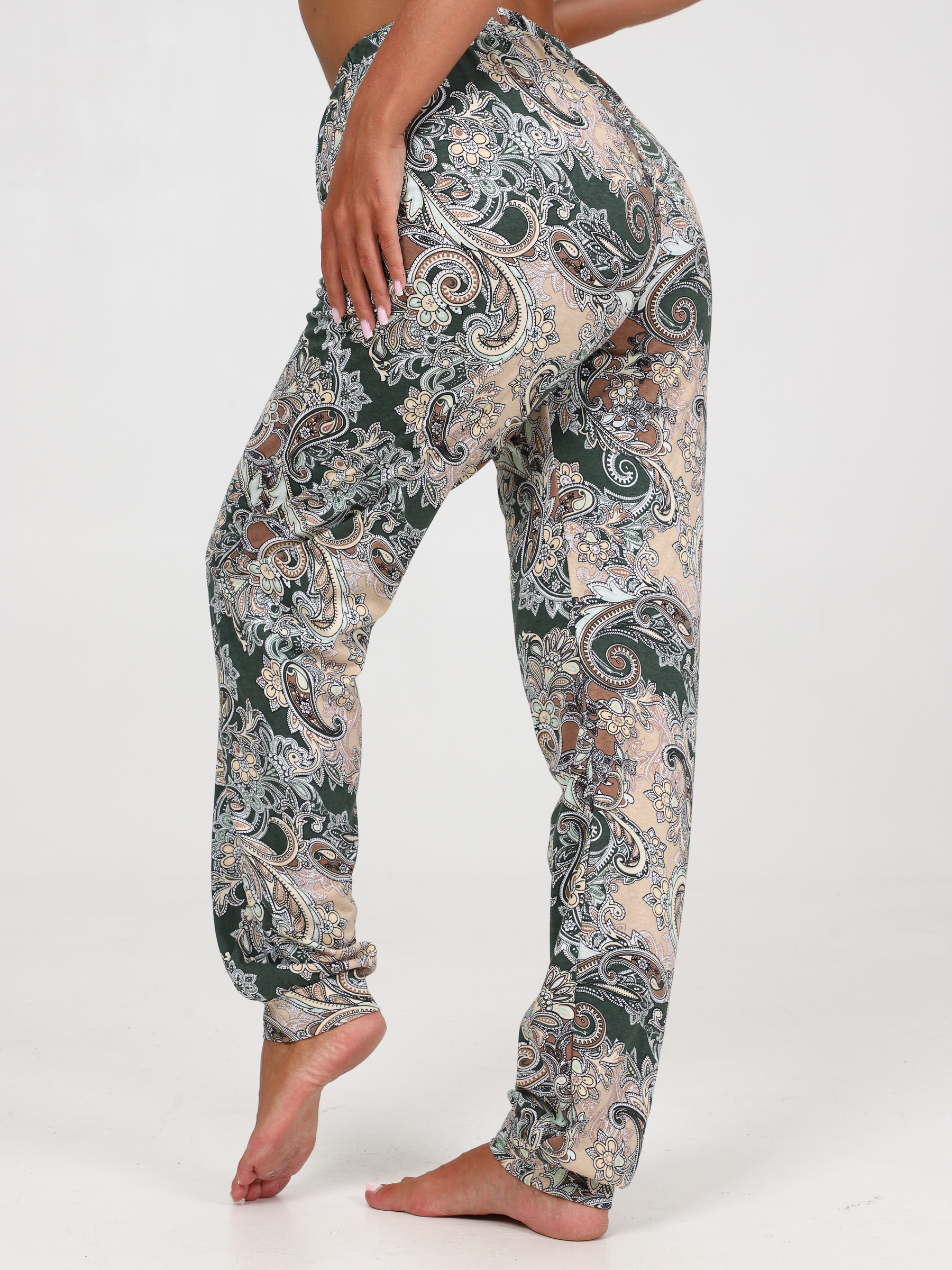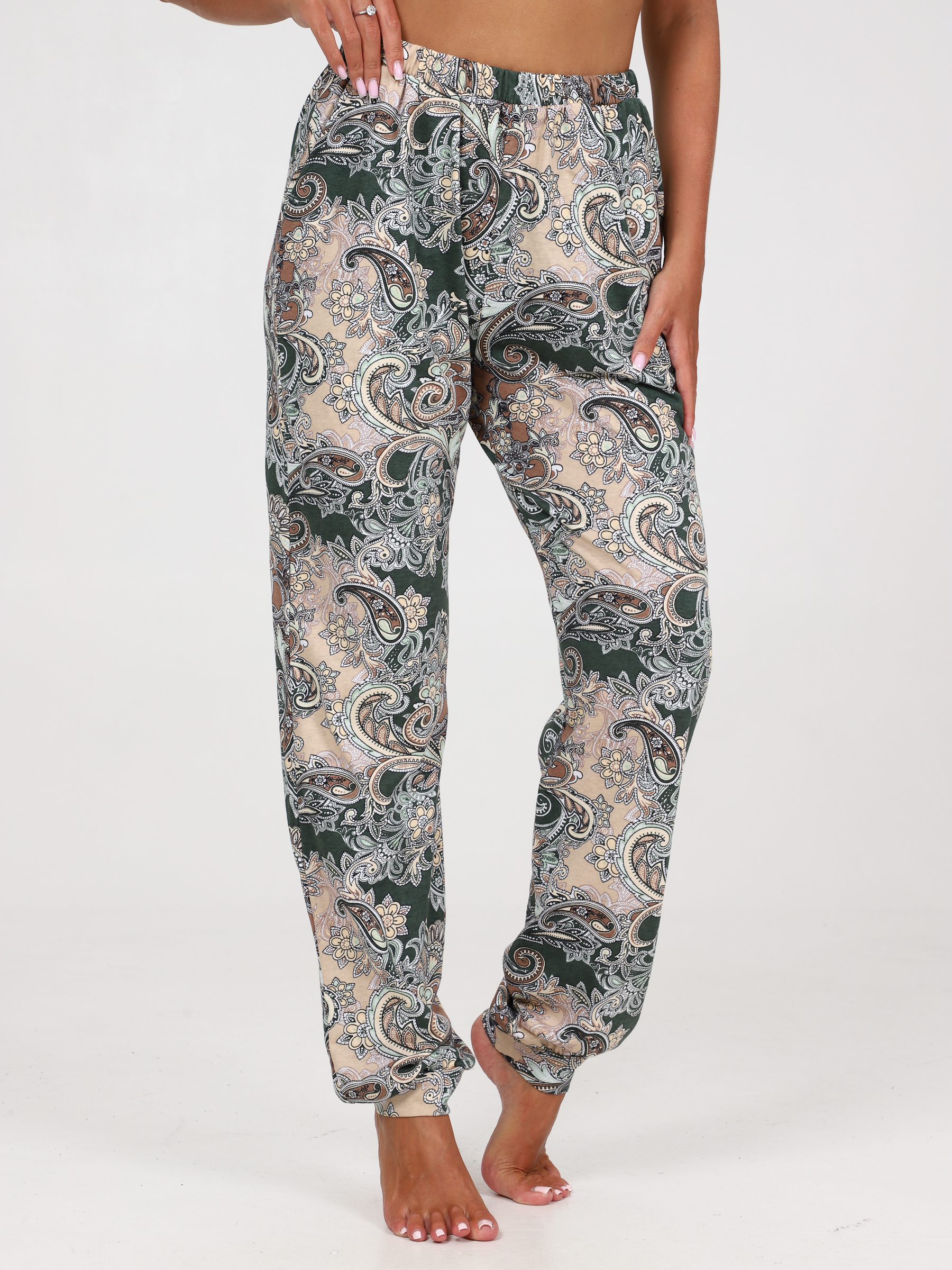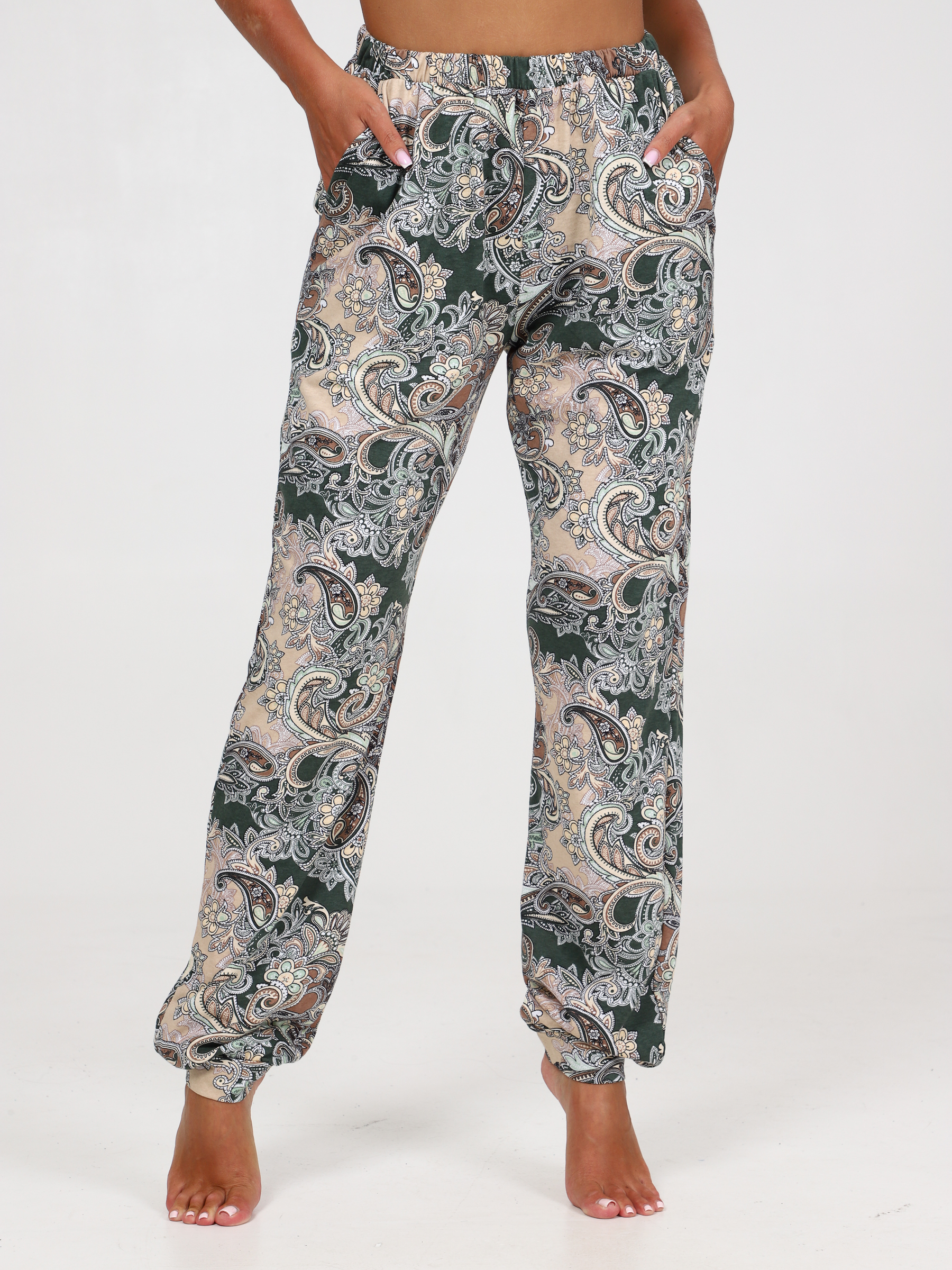 Женские брюки БК-275 / Бежево-изумрудные огурцы