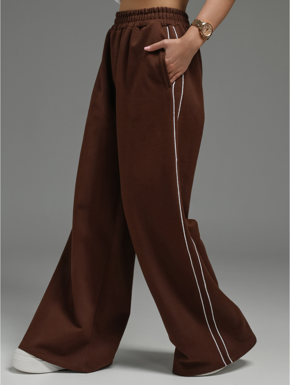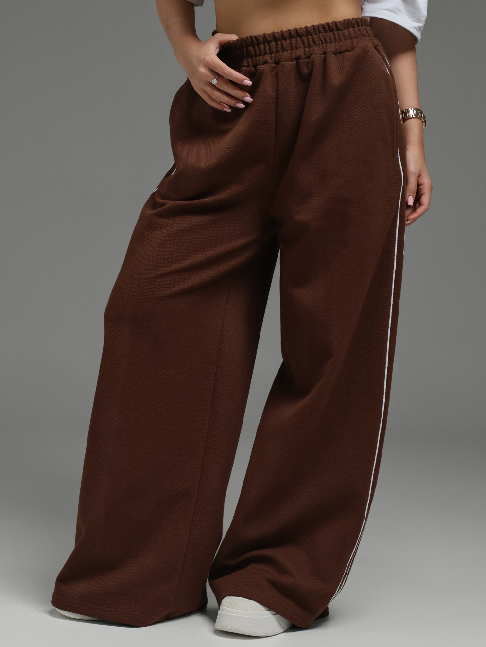 Эта изящная полоска — фирменный штрих, который делает силуэт стройнее, а образ — завершённым и по-спортивному элегантным.