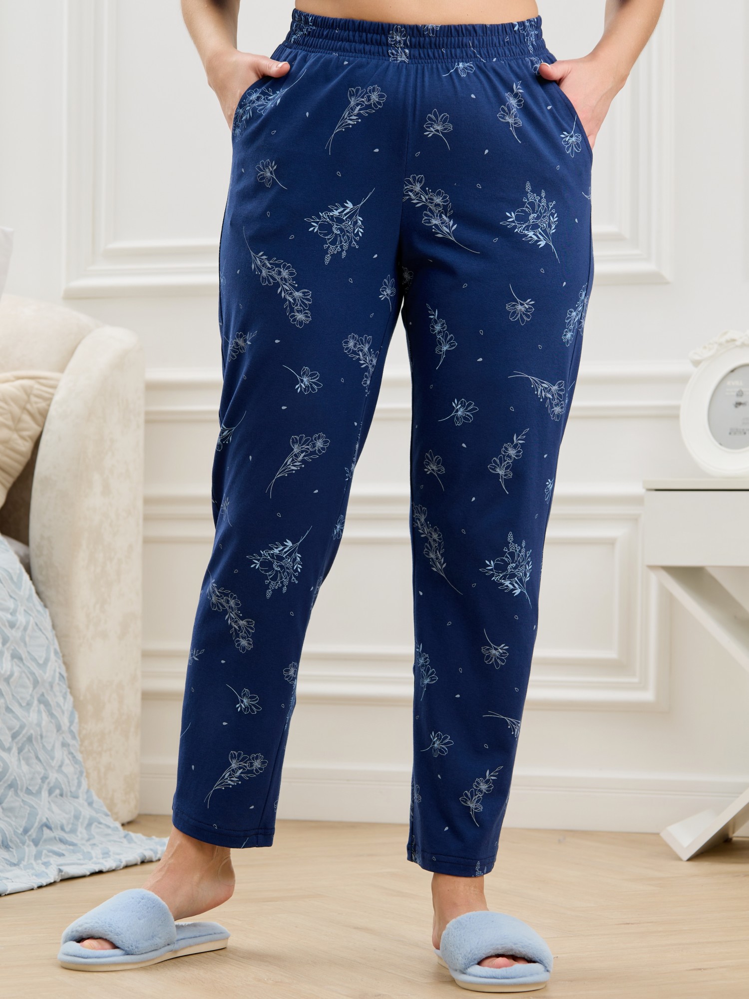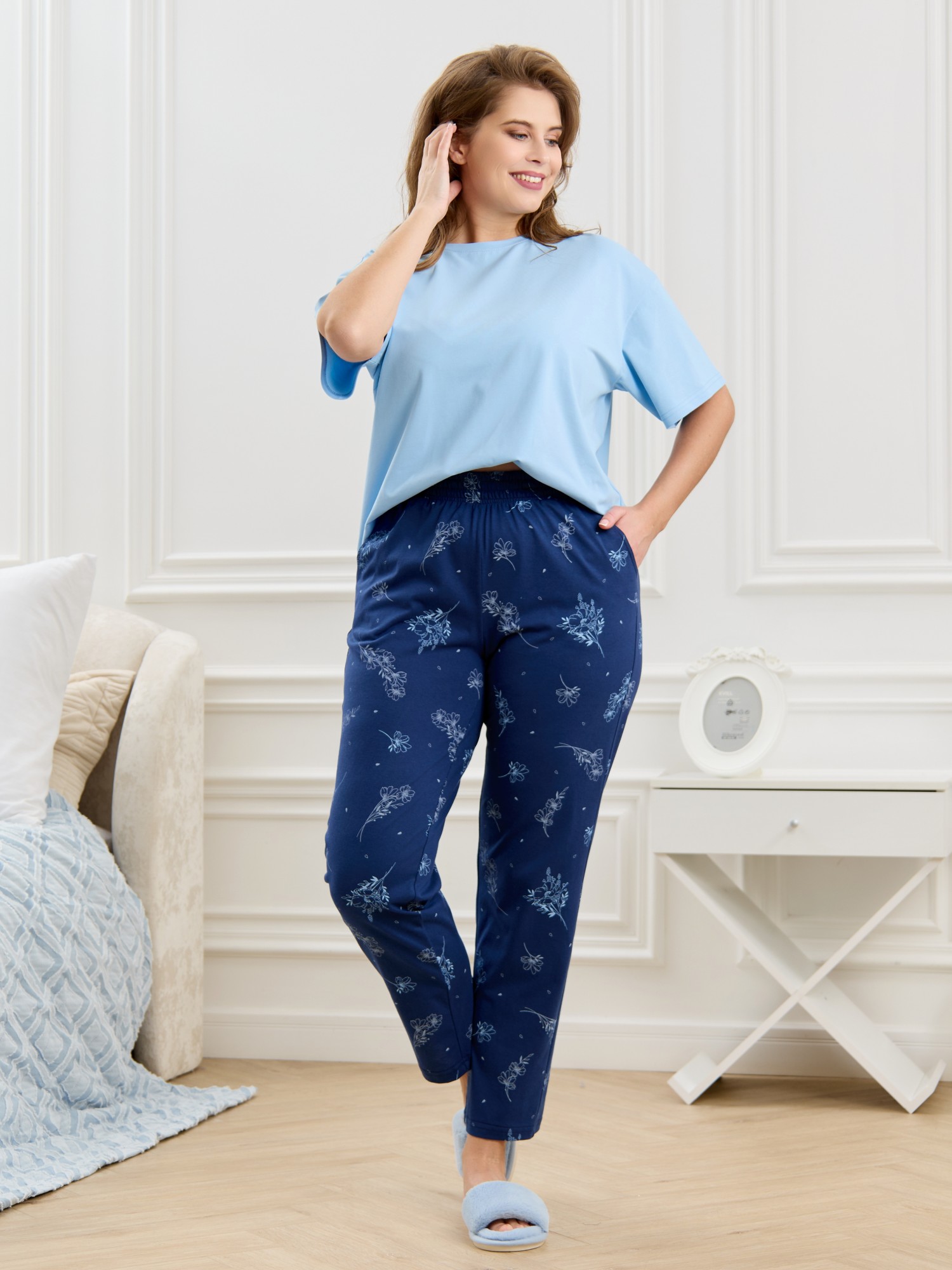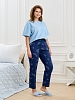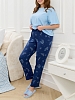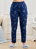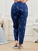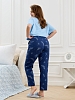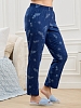 Брюки женские из трикотажного полотна «кулирка» с набивным рисунком, прямого кроя слегка зауженные книзу, с карманами в боковых швах, на притачном поясе с эластичной тесьмой внутри.