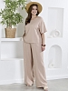 Брюки женские из гладкокрашеного тканого полотна, свободного кроя, удлиненные, с карманами в боковых швах, на притачном поясе с эластичной тесьмой внутри. Передние половины застрочены по центральным линиям.