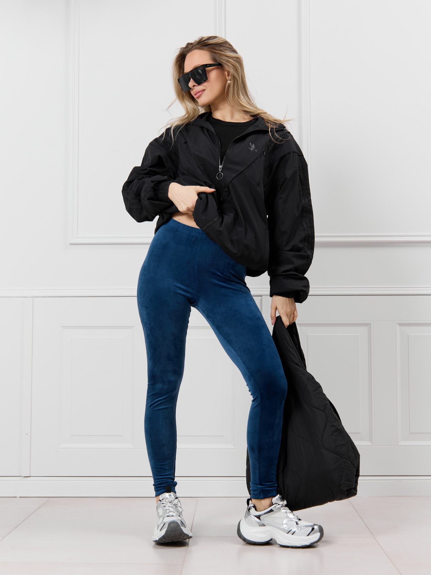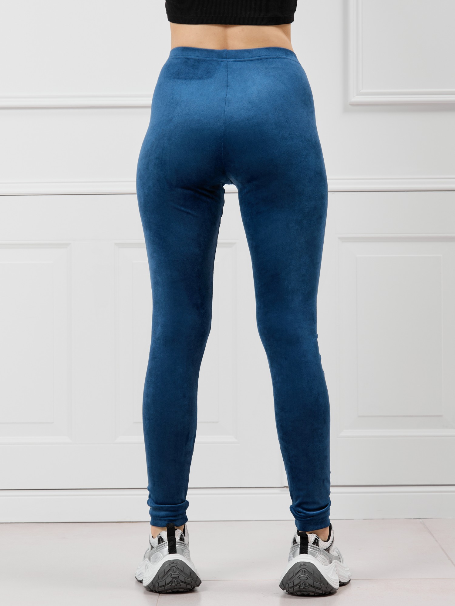 Леггинсы молодежные из трикотажного гладкокрашенного полотна «велюр-стрейч» длинные, облегающие фигуру, с эластичной тесьмой по талии.
