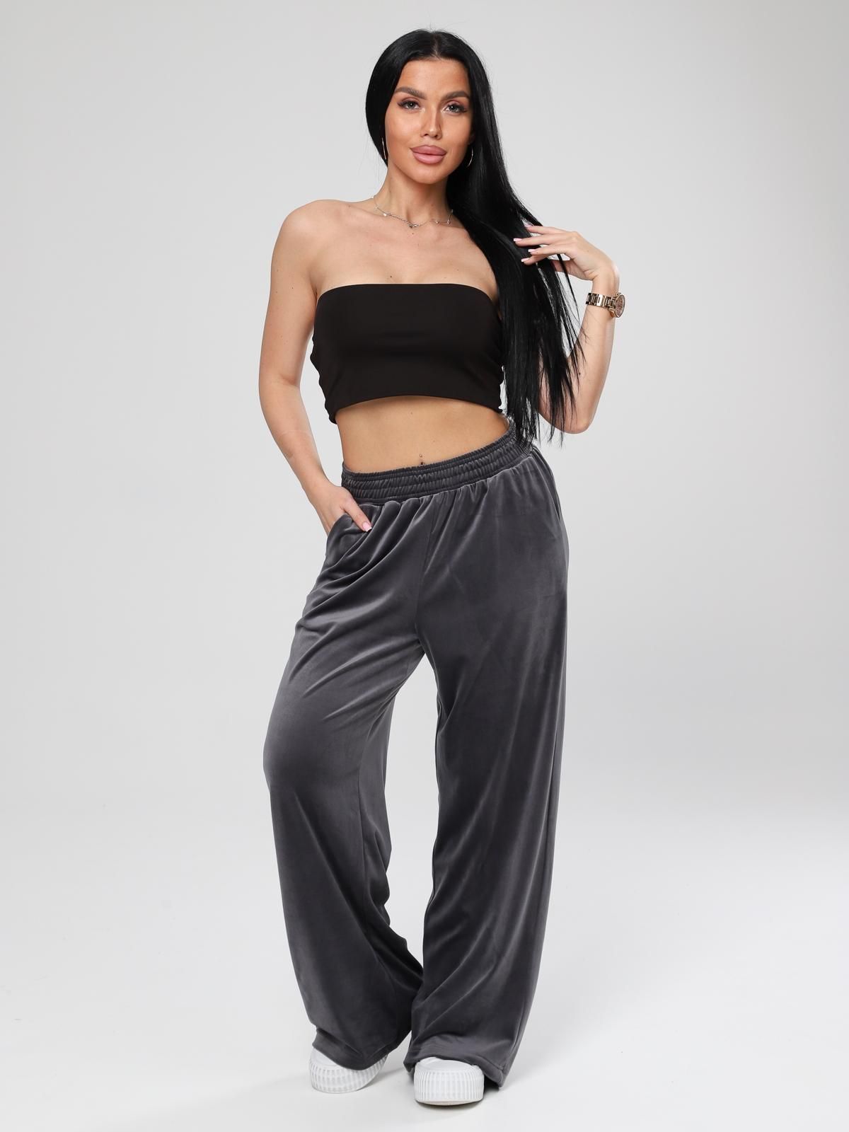 Женские велюровые брюки свободного кроя. Подходят для домашнего отдыха, прогулок, неформальных встреч, занятий лёгкими видами спорта.
