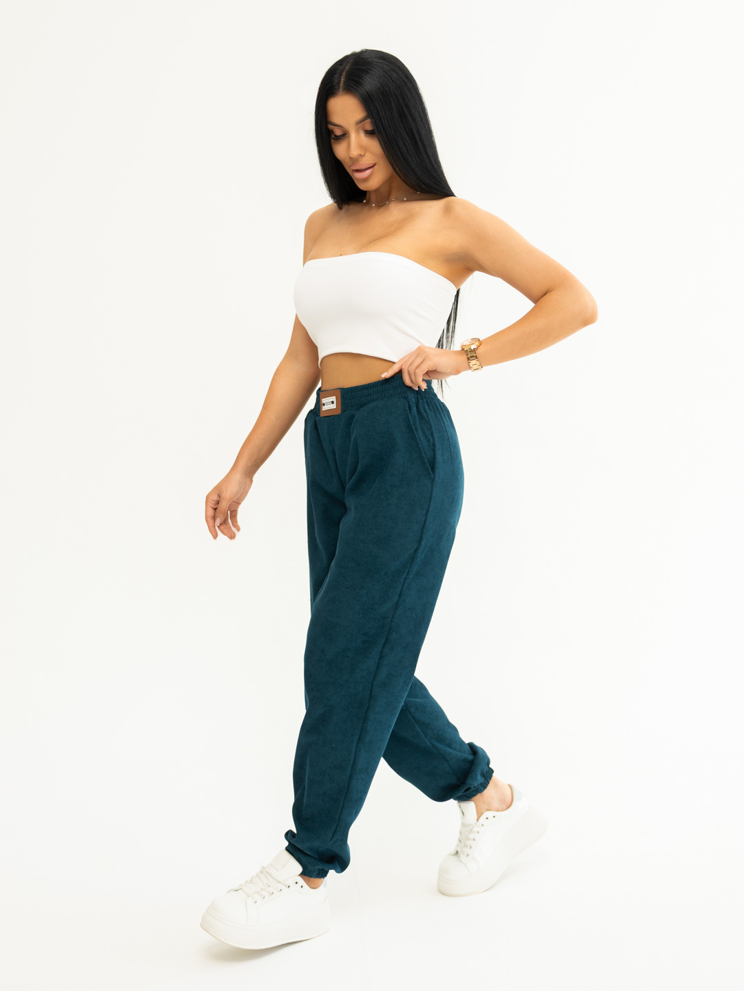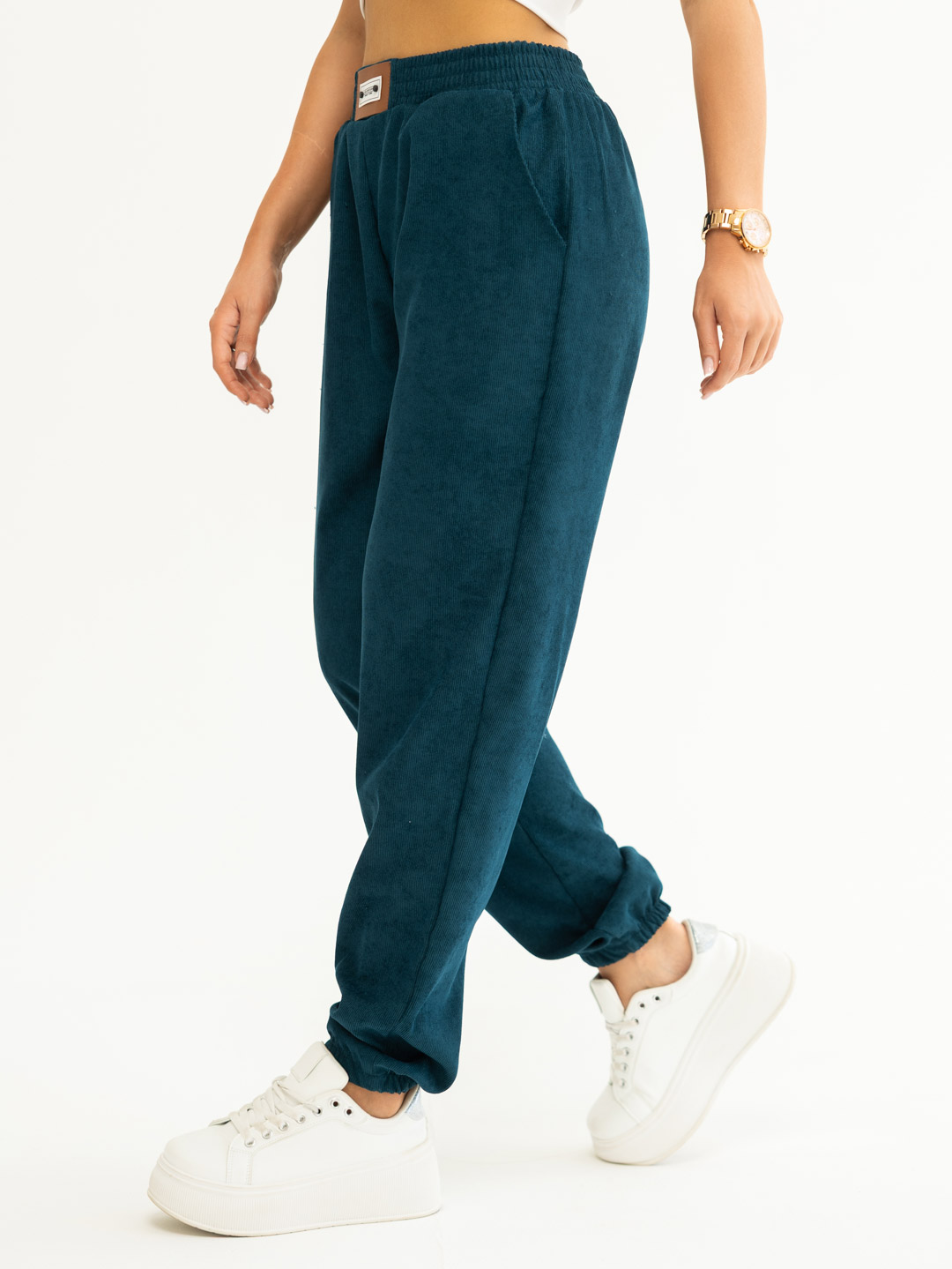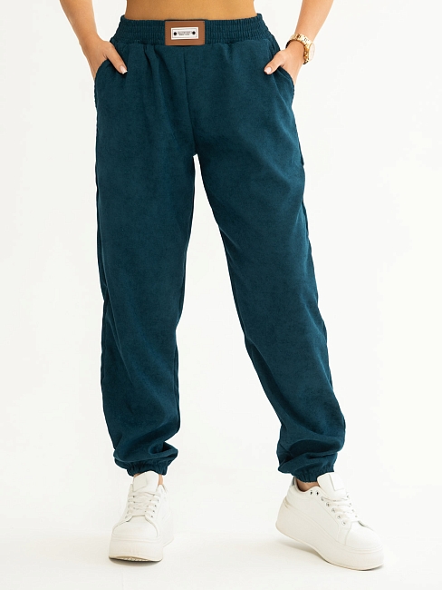 Брюки джогеры из вельвета с карманами в боковых швах и нашивкой на поясе. Джогеры сочетают в себе спортивное удобство и городскую элегантность.