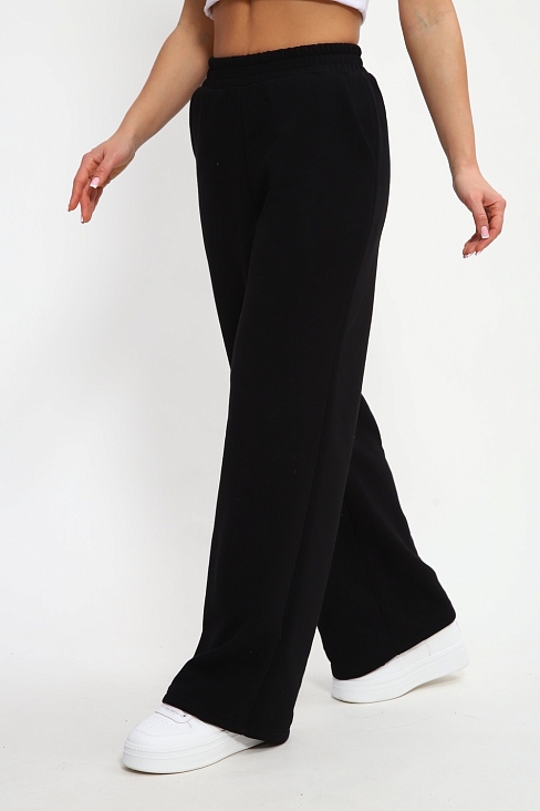 Стильные и удобные трикотажные брюки палаццо на резинке создают универсальный образ, а также комфортны в ношении, расклешенные от бедра - визуально стройнят. Штаны изготовлены из качественного футера 3-х нитки, который не скатывается при ношении. Универсальный крой хлопковых брюк сочетает в себе разные стили: вы можете носить их с кедами, как спортивные штаны или надеть на работу, в школу, университет или даже дома. Брюки палаццо отлично сочетаются со свитшотом или худи, их можно надеть вместе и носить как костюм.